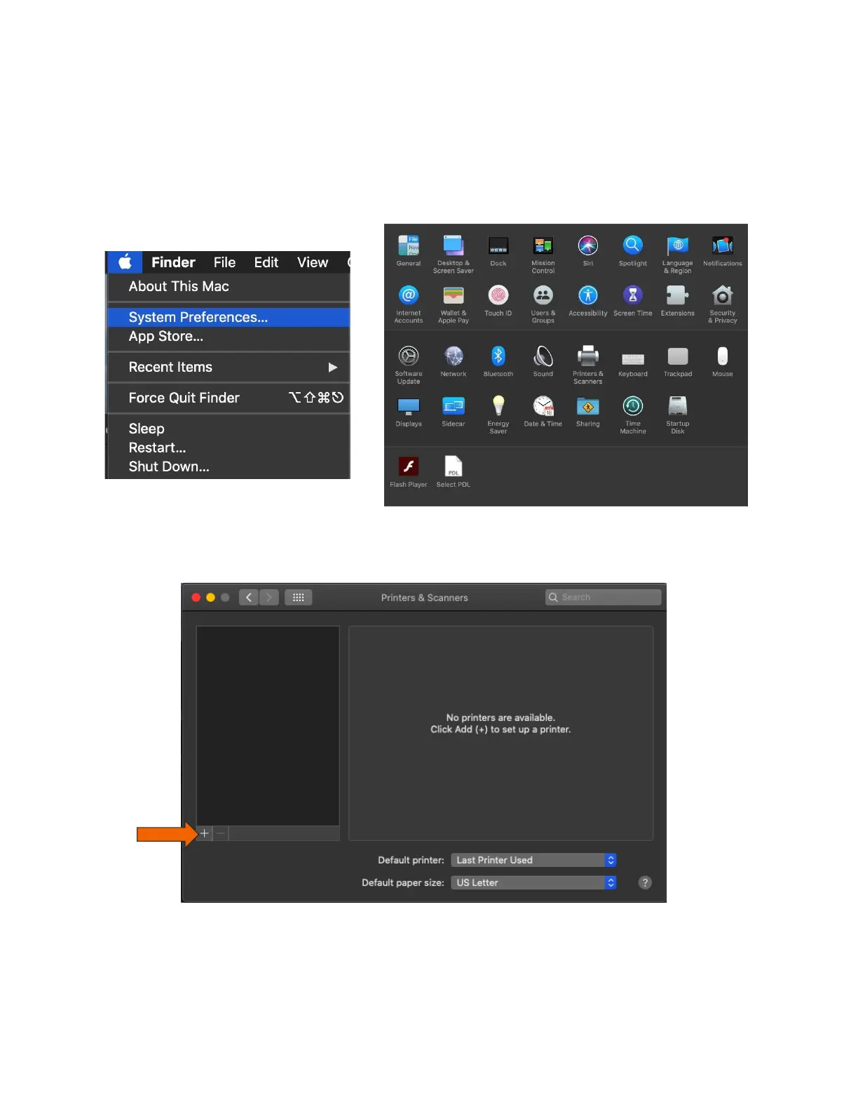 left corner of computer screen, select System Preferences, then select Printers and Scanners.