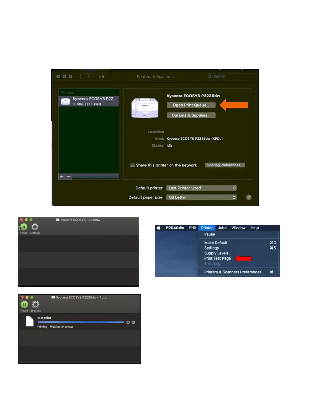 From this area you can also print a test page. Select open print queue, the print spooler dialog will open, from the