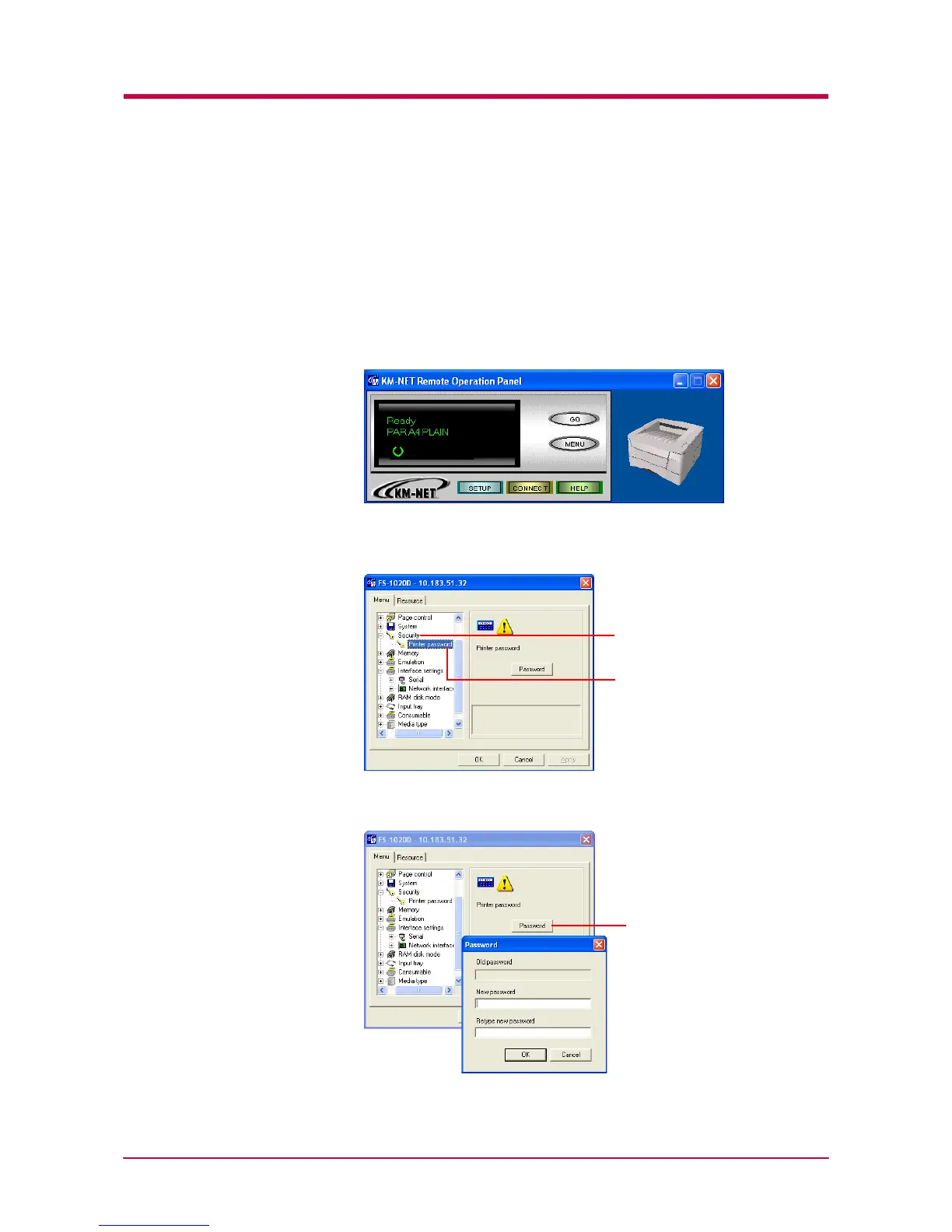 the KM-NET Remote Operation Panel. If a password is set, you must enter