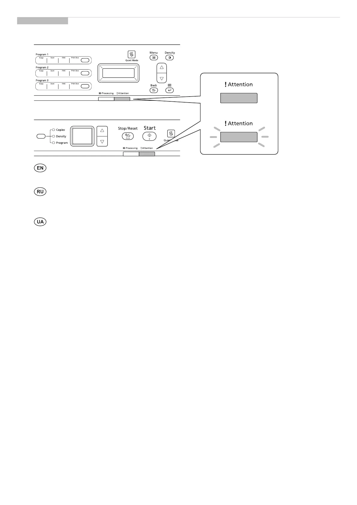 Внимание. Также сообщение об ошибке или код ошибки появится на экране. Проверьте индикацию в KYOCERA