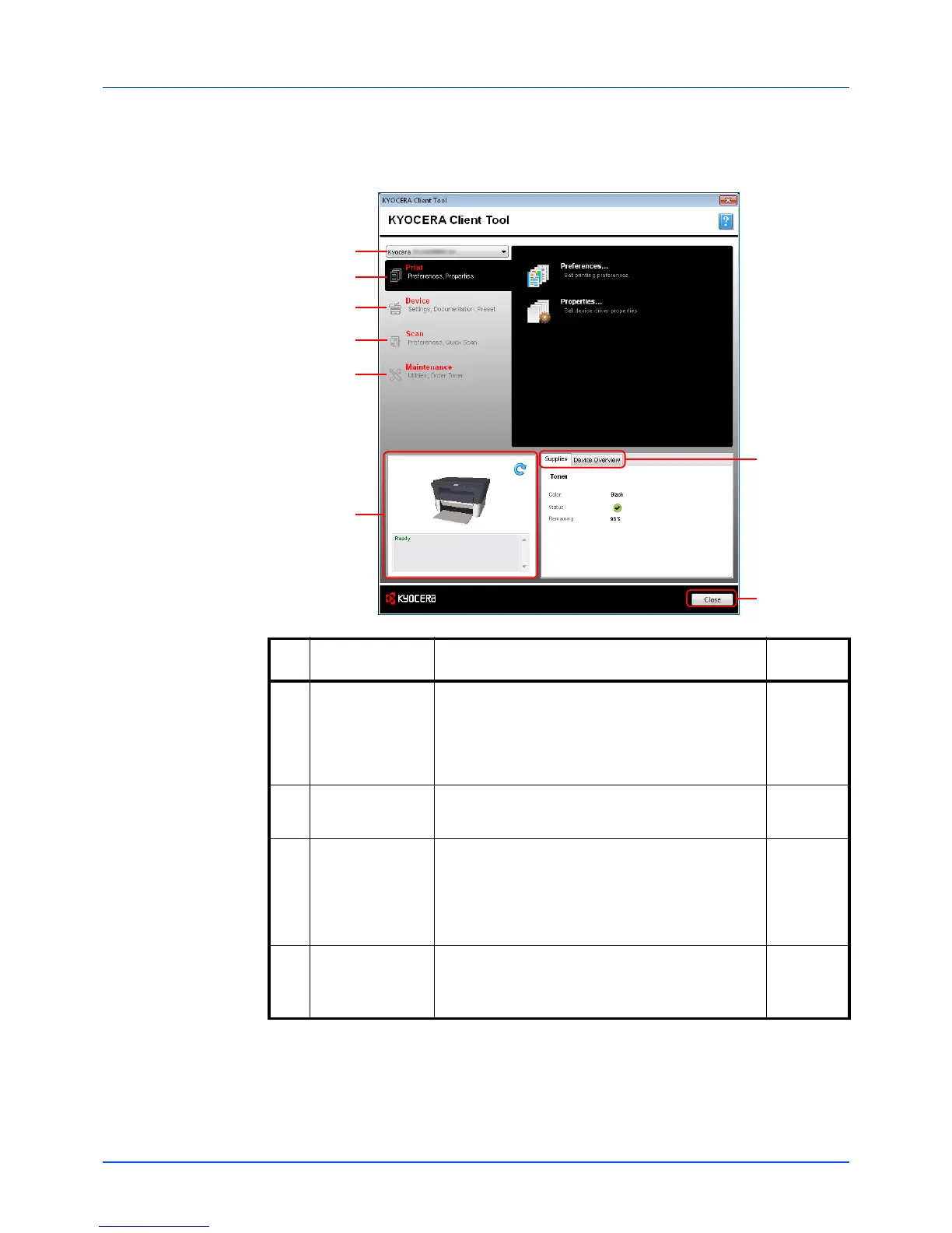 1 Machine list The list at the top of KYOCERA Client Tool screen