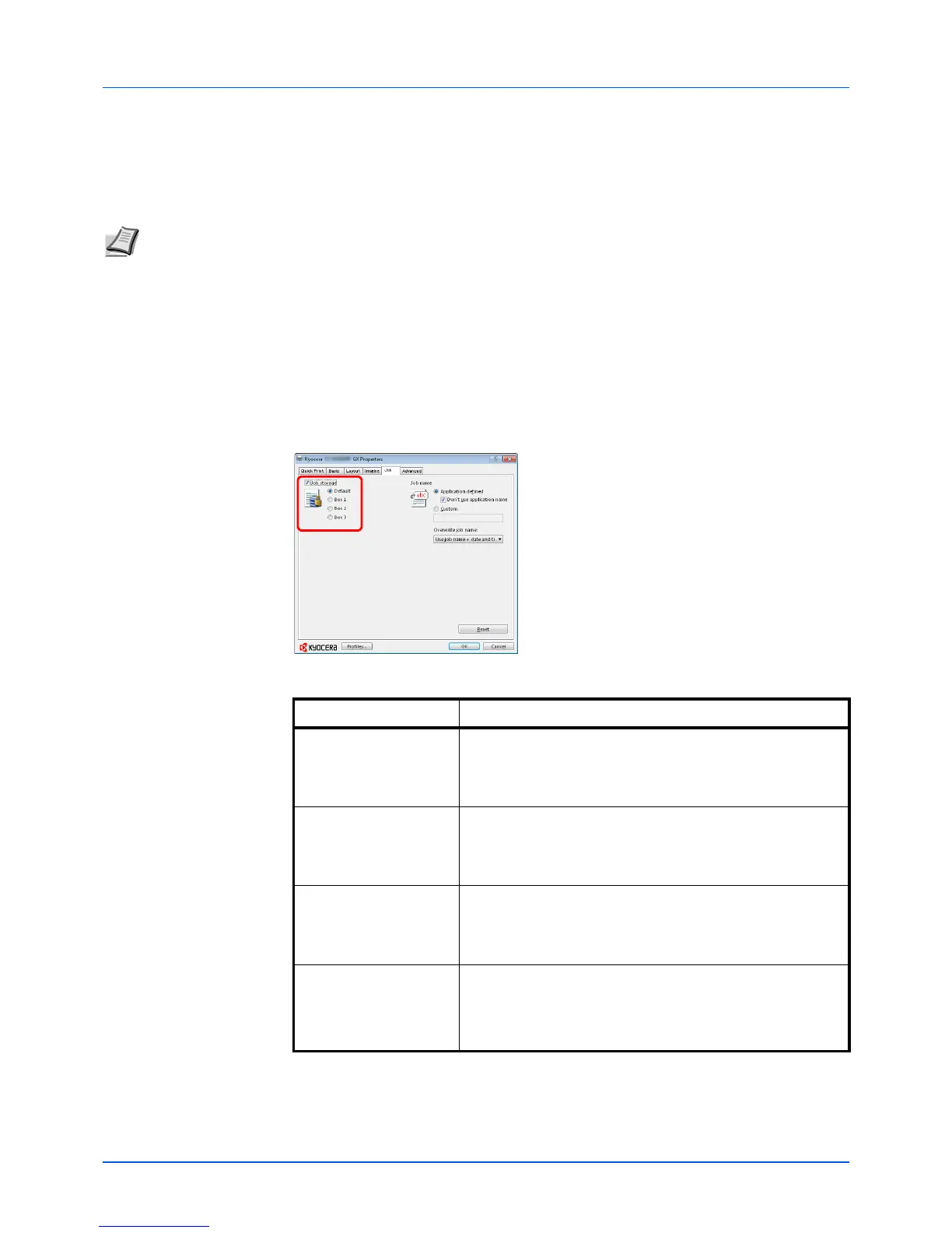 4 Select Job storage then select the Print Box where the print job should be stored from the