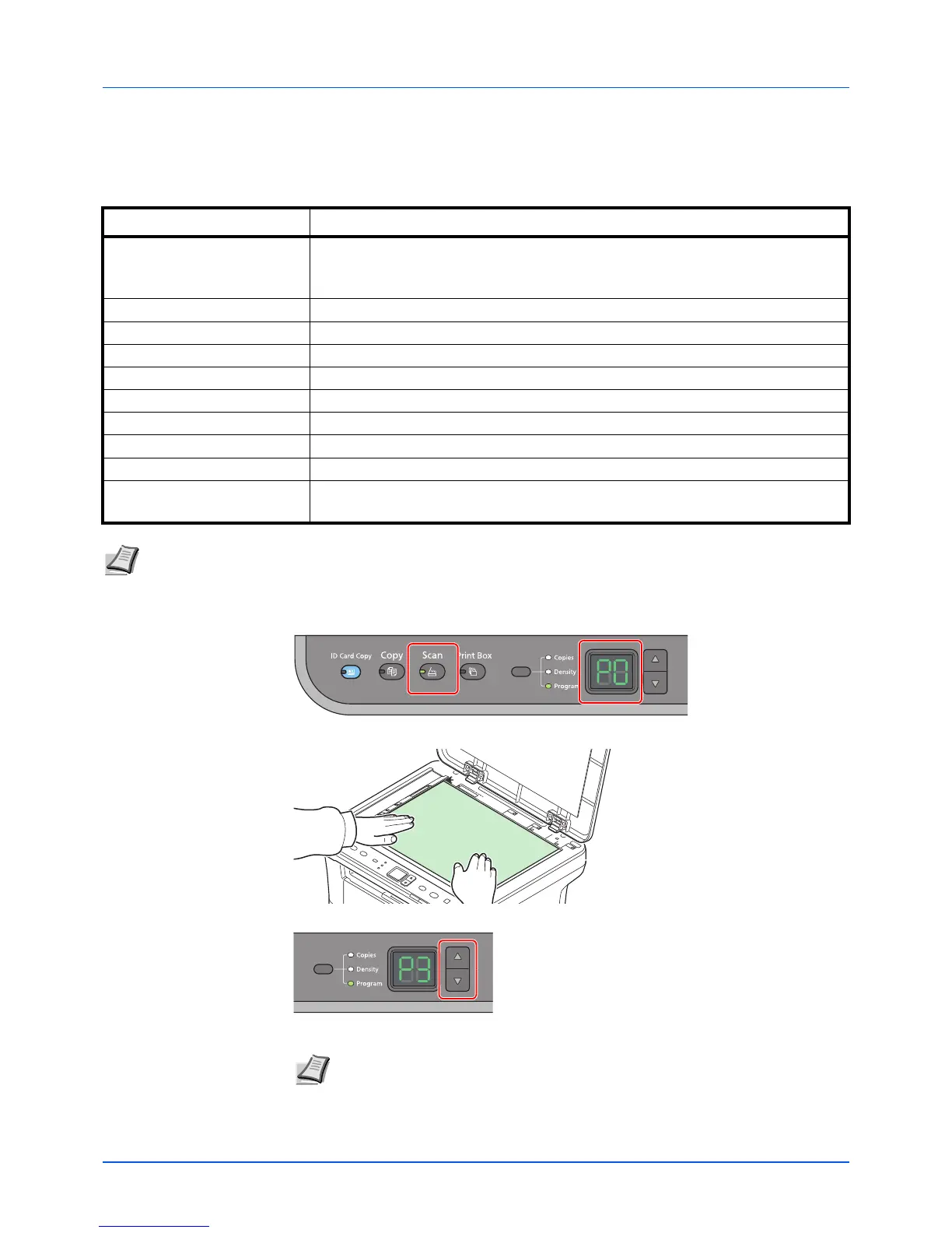 1 Press [Scan]. P0 appears in the display on the operation panel.