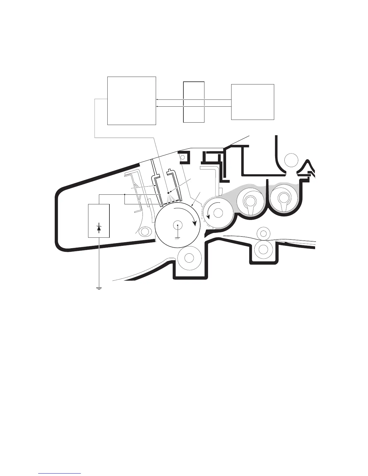 The following shows a simplified diagram of the electrophotographic components in relation to the engine system.