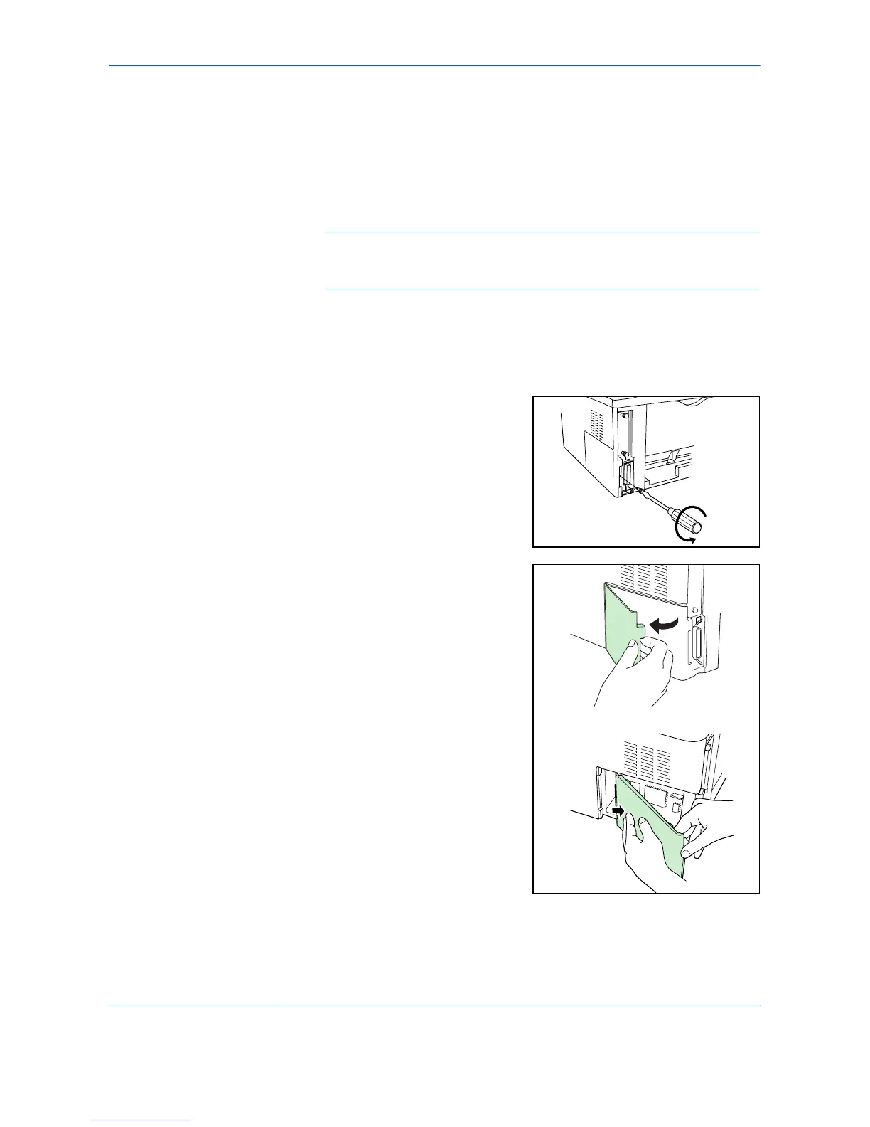 To install the DIMM, switch off the printer’s power, unplug the power cord