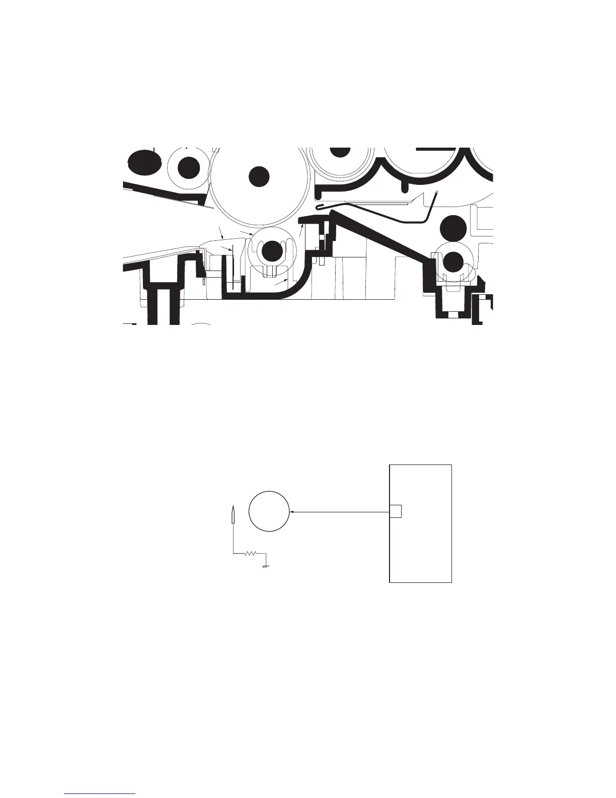 The transfer/separation section consists of the transfer roller, discharge electrode and paper chute guide. A