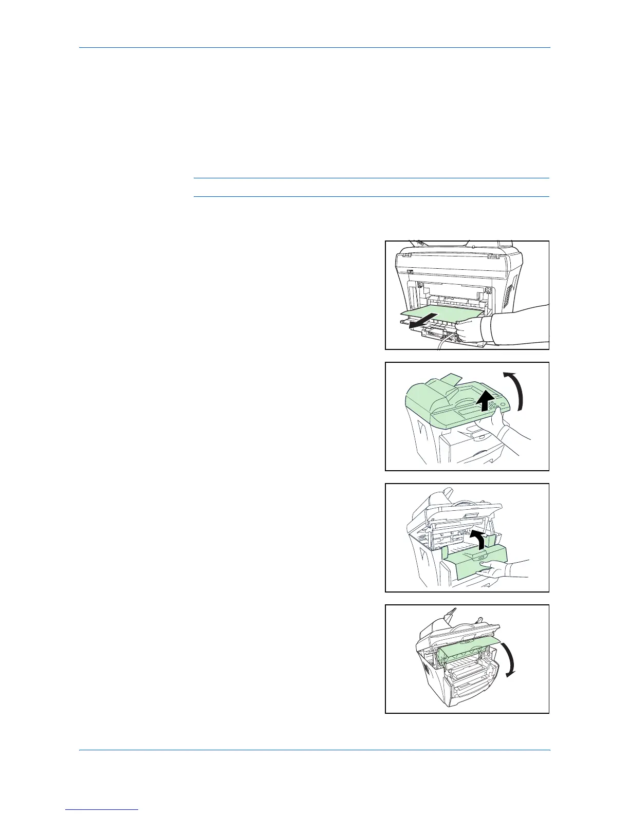 If a paper jam occurs, copying or printing will stop.