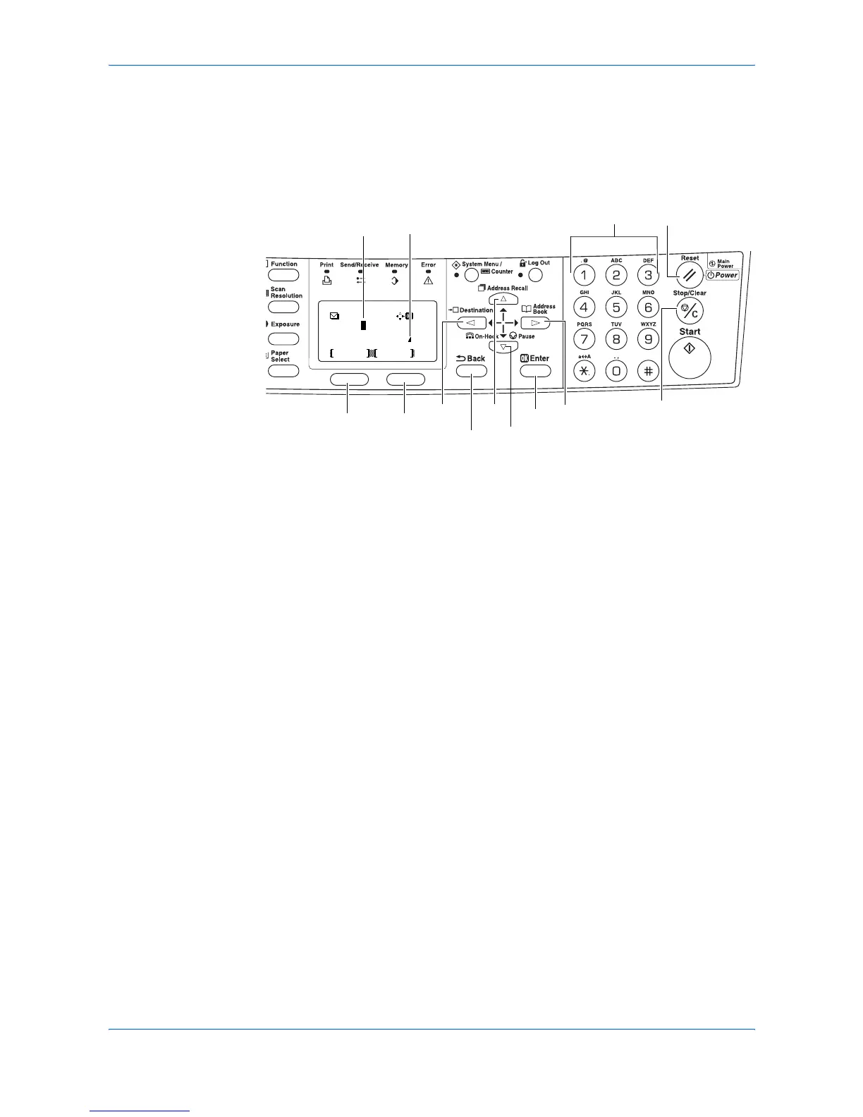 To enter an e-mail address, etc., the characters are entered using the Numeric Keys.