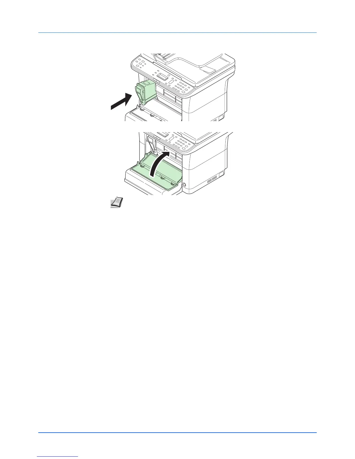 5 Close the front cover. Toner is replenished for about 4 seconds.