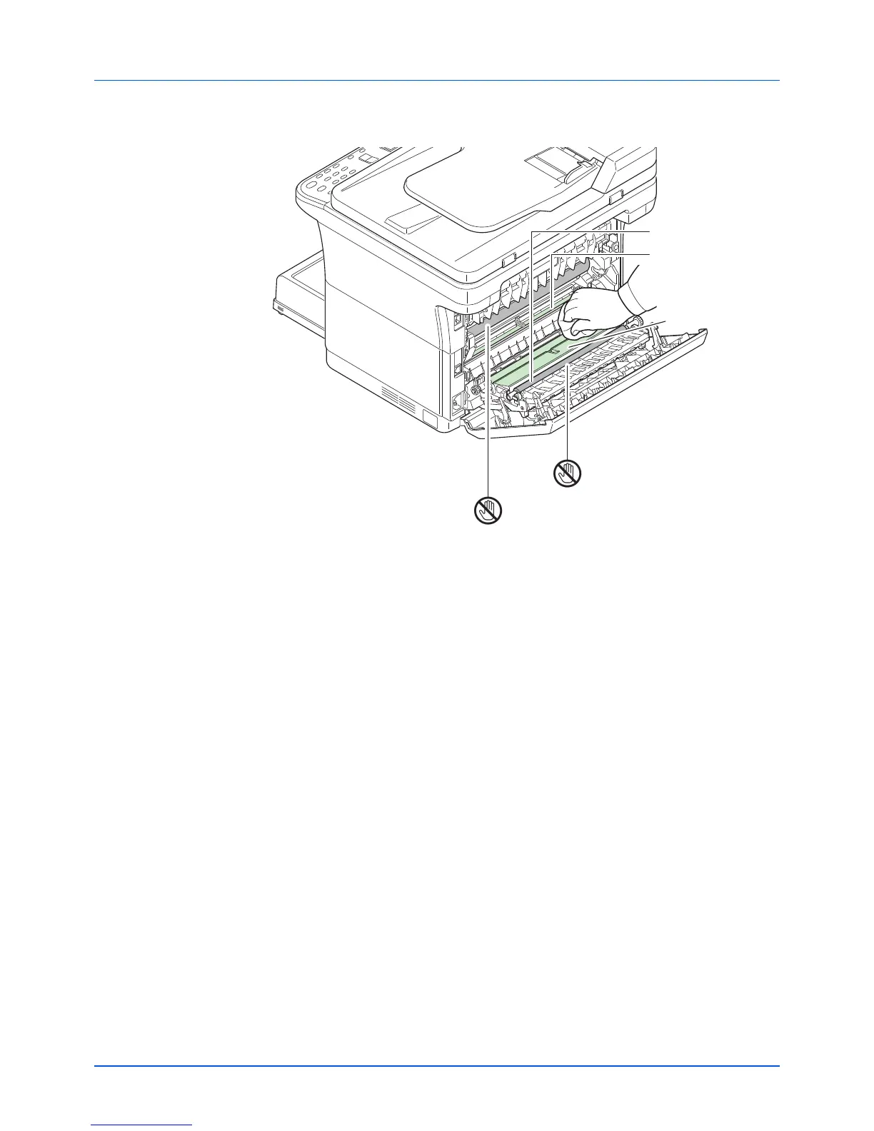 IMPORTANT Take care not to touch the drum and transfer roller (black) during