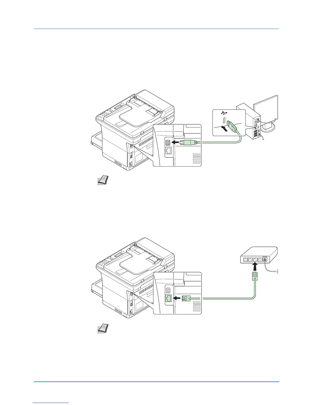 Connecting the Network Cable (FS-1025MFP, FS-1125MFP and FS-1325MFP)