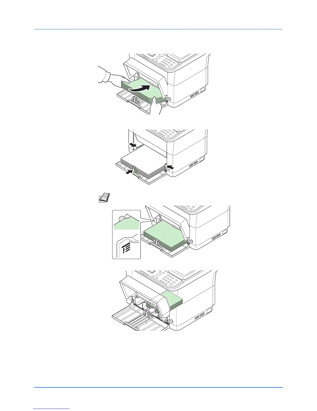 Note Load an amount of paper that fits under (does not contact) the tabs on the width