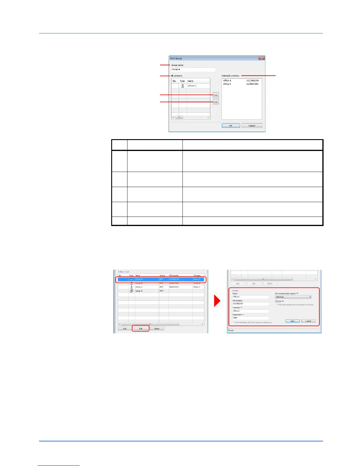 Select the contact entry to be edited and click Edit. Edit the contact entry and click Save.