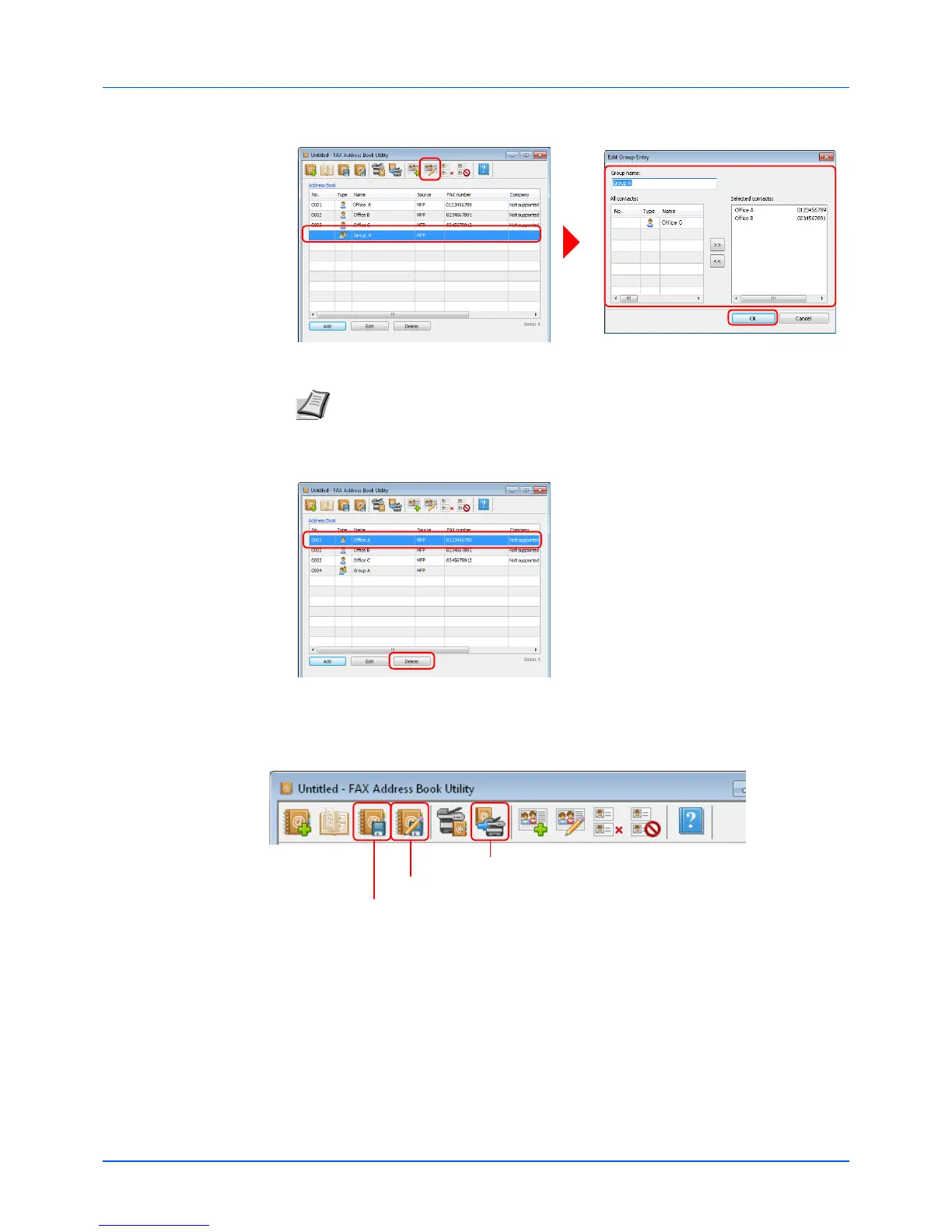 When you have finished editing the Address Book, save the Address Book in the machine or in an FDT file.