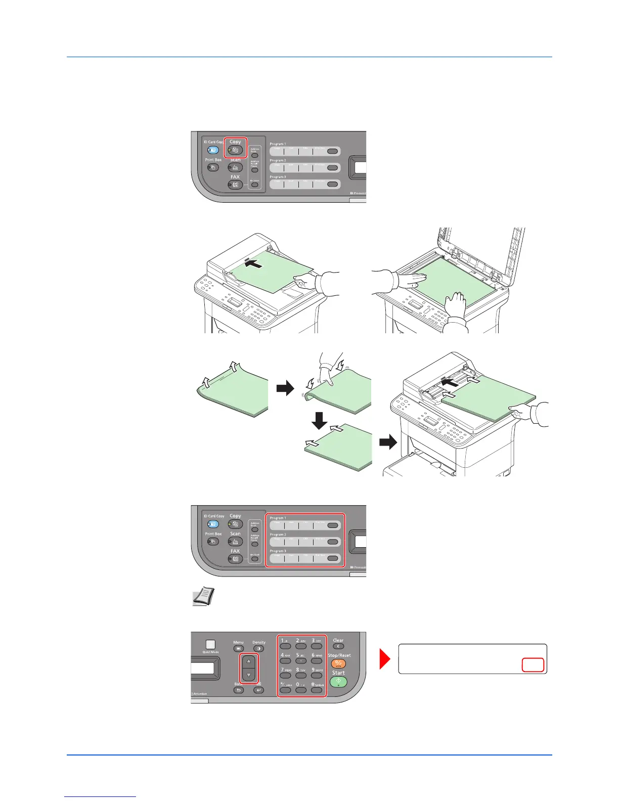 2 Place the originals. For details, refer to Loading Originals on page 2-18.