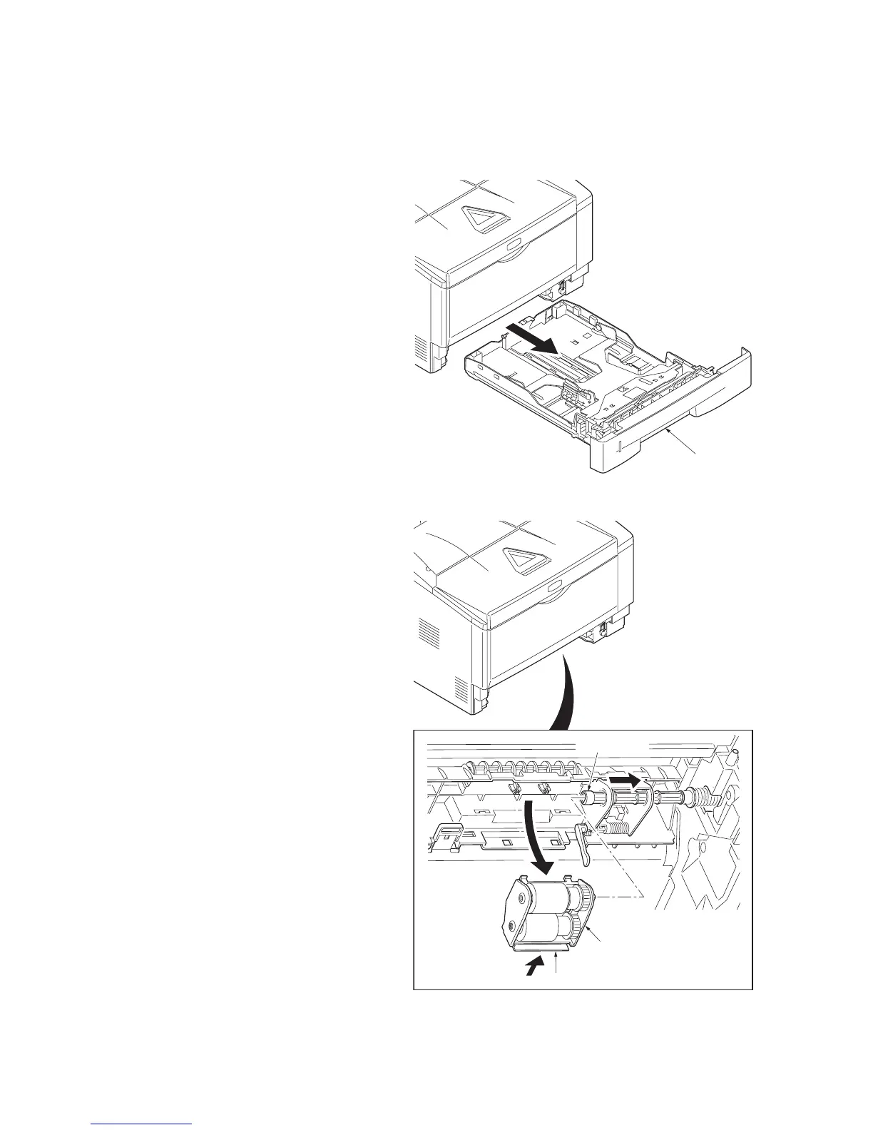 (1) Detaching and refitting the paper feed roller assembly (paper feed roller and pickup roller)