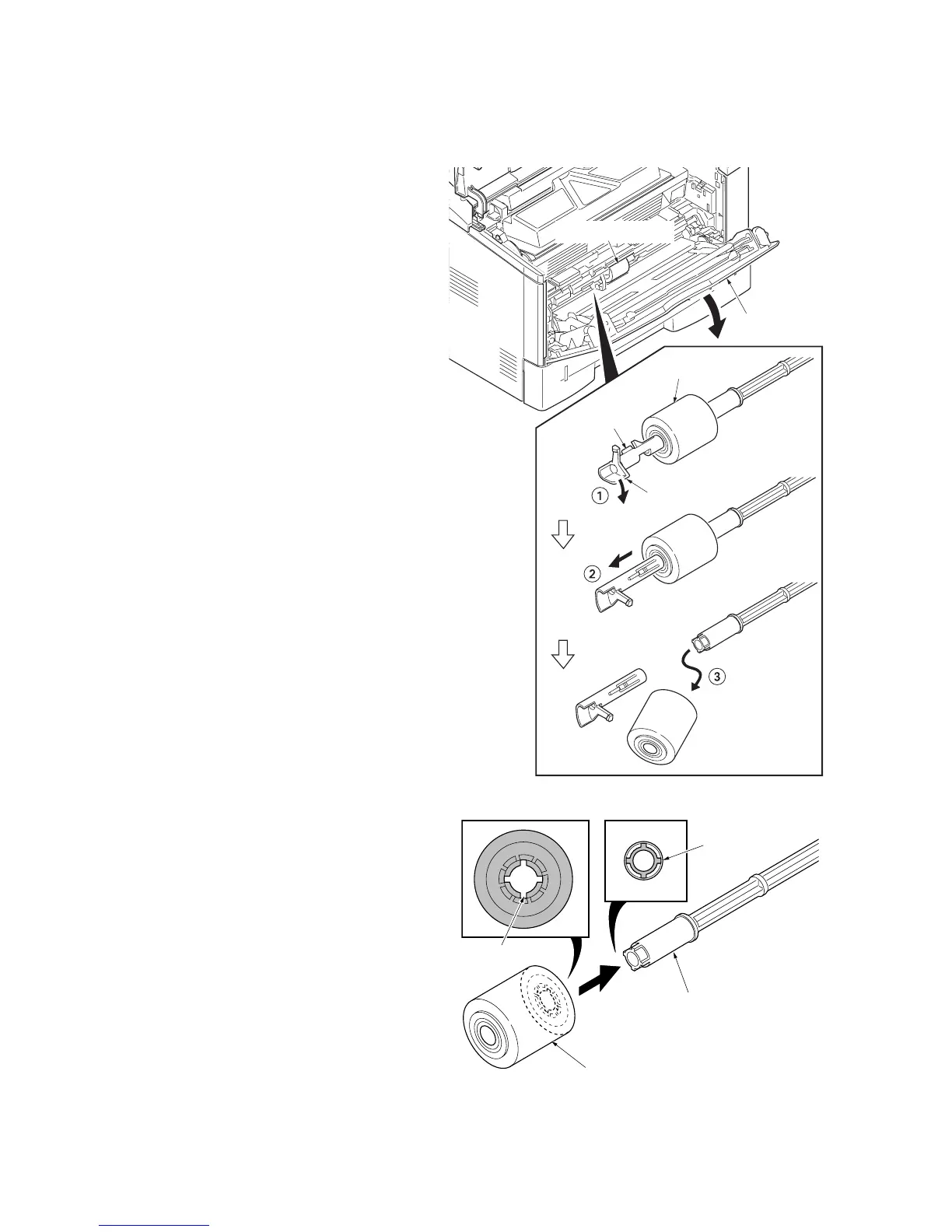 (3) Detaching and refitting the MP paper feed roller
