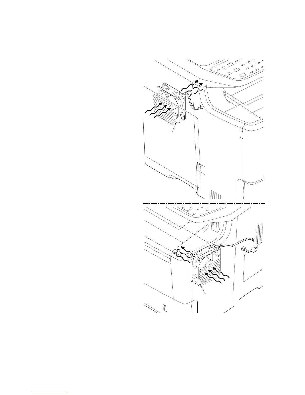 When detaching or refitting the left fan motor or right fan motor, be careful of the airflow direction (intake or