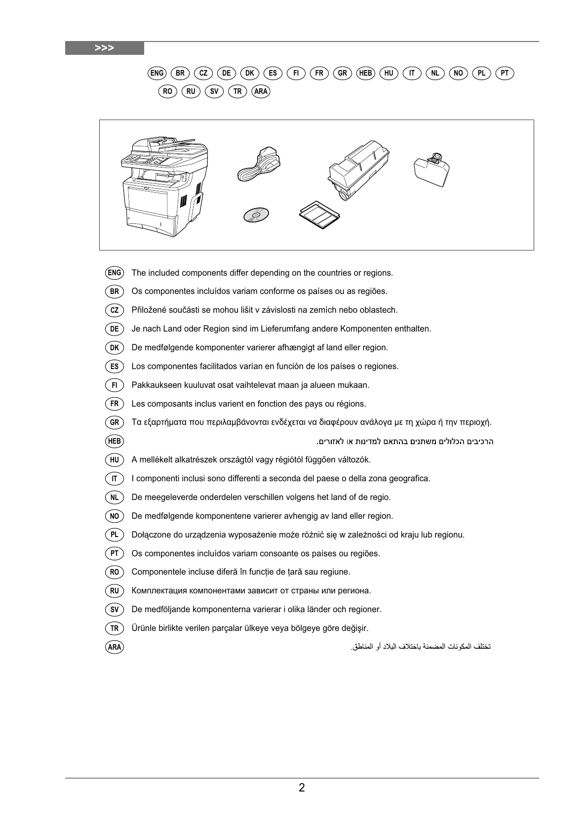De medfølgende komponenter varierer afhængigt af land eller region.