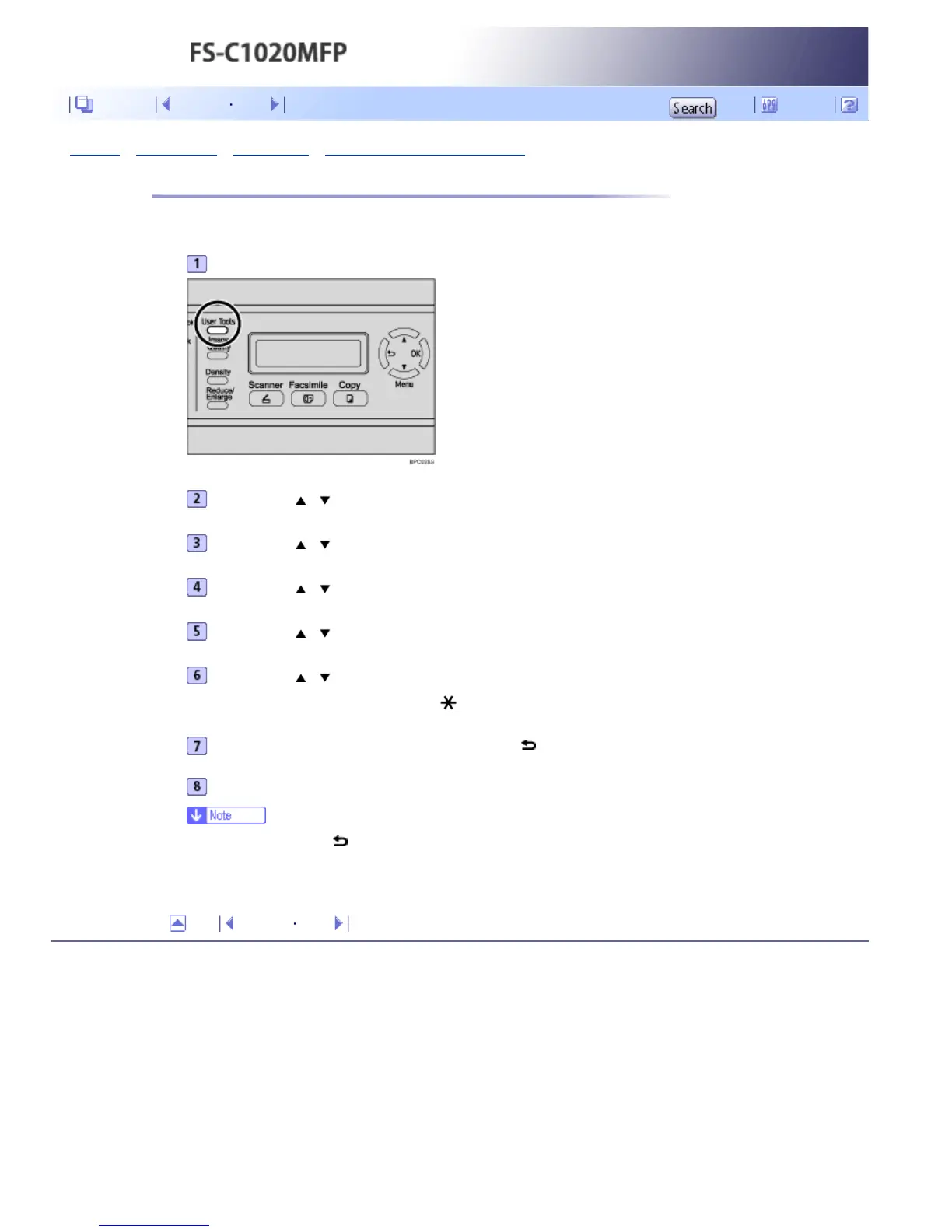 ● You can press the [ ] key to exit to the previous level of the menu tree.