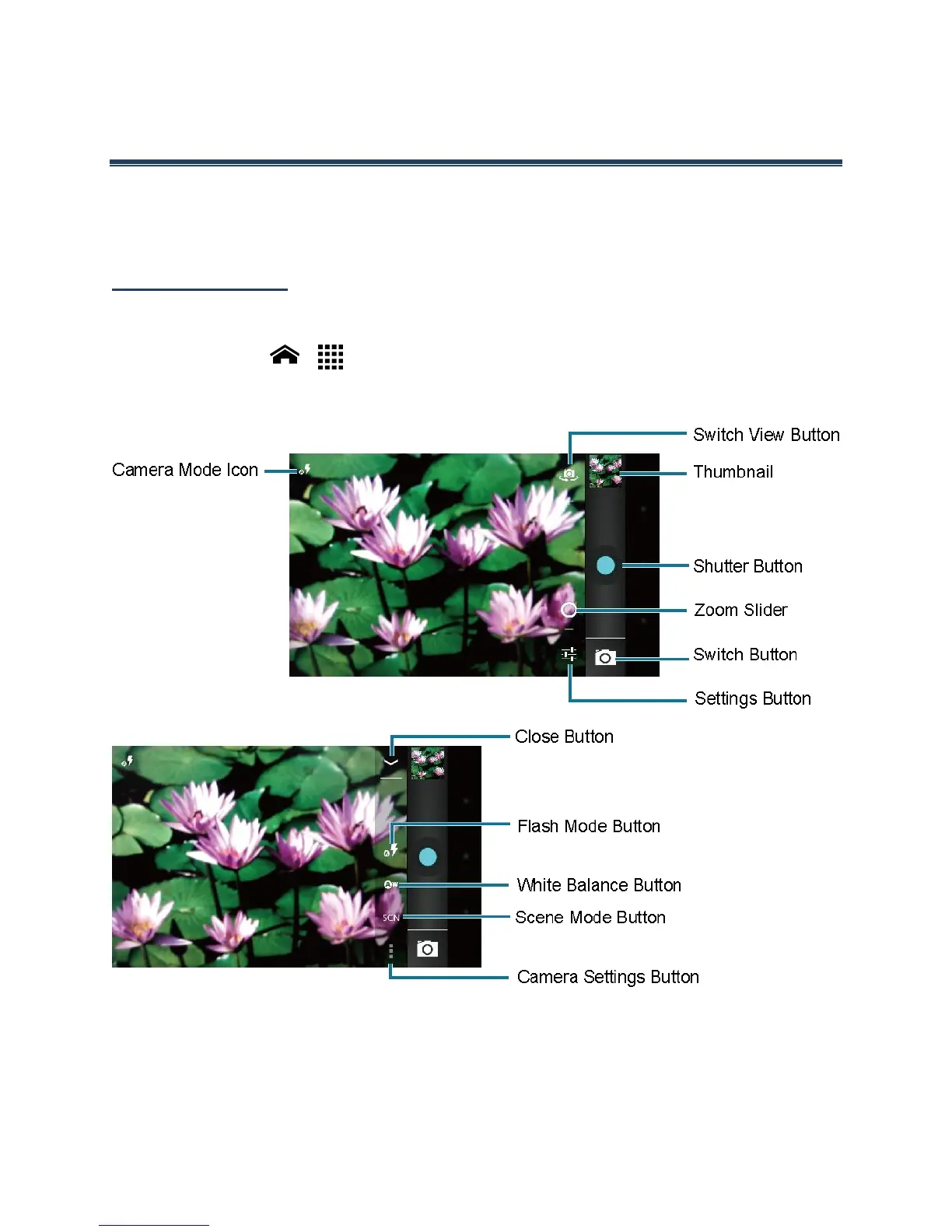 Switch View Button: Touch to switch between the back camera lens and the front-