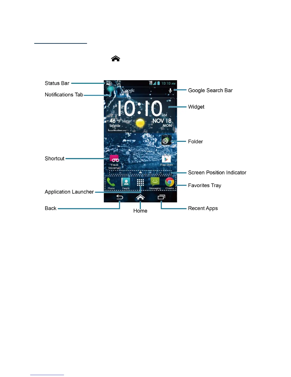Favorites Tray: Contains up to five icons and appears on every home screen. You can