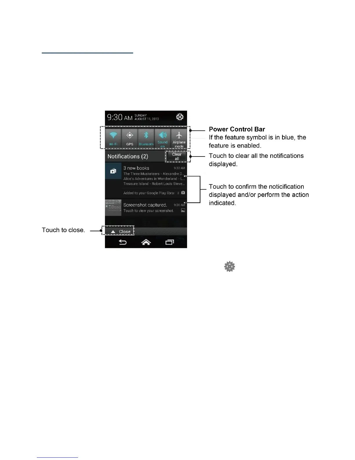 Open the Notifications panel to view the Power control bar, the list of notifications you