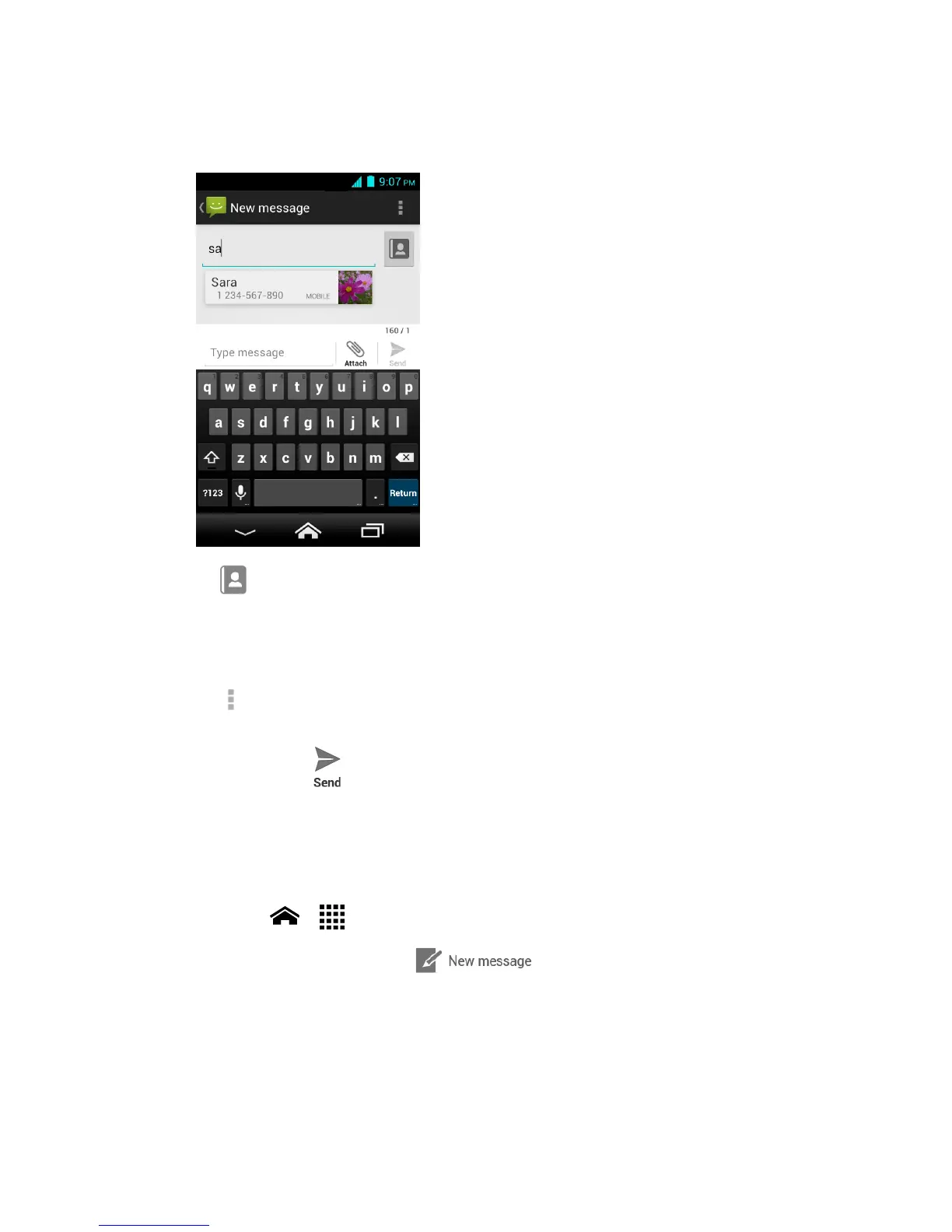 Tip: Touch to select options for composing messages, such as Add subject, Insert