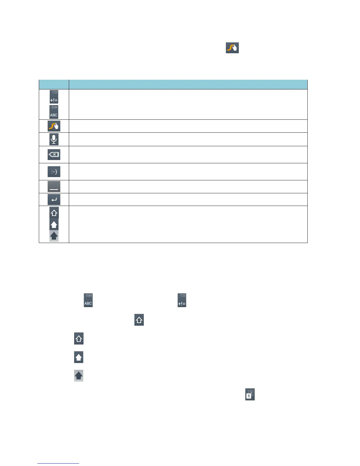 Shift: Touch to toggle between the uppercase, lowercase and caps lock text