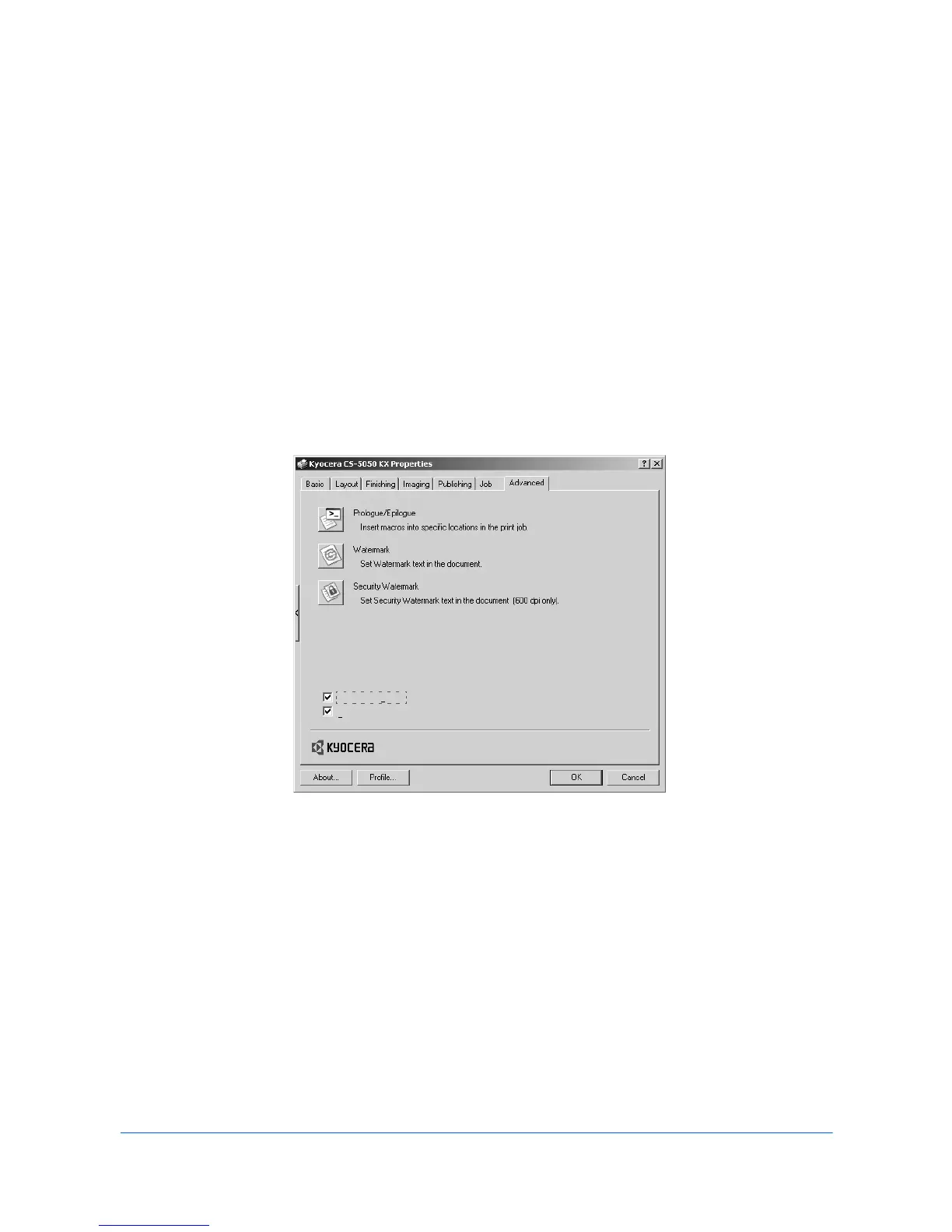 • Prologue/Epilogue inserts PRESCRIBE printing system language commands