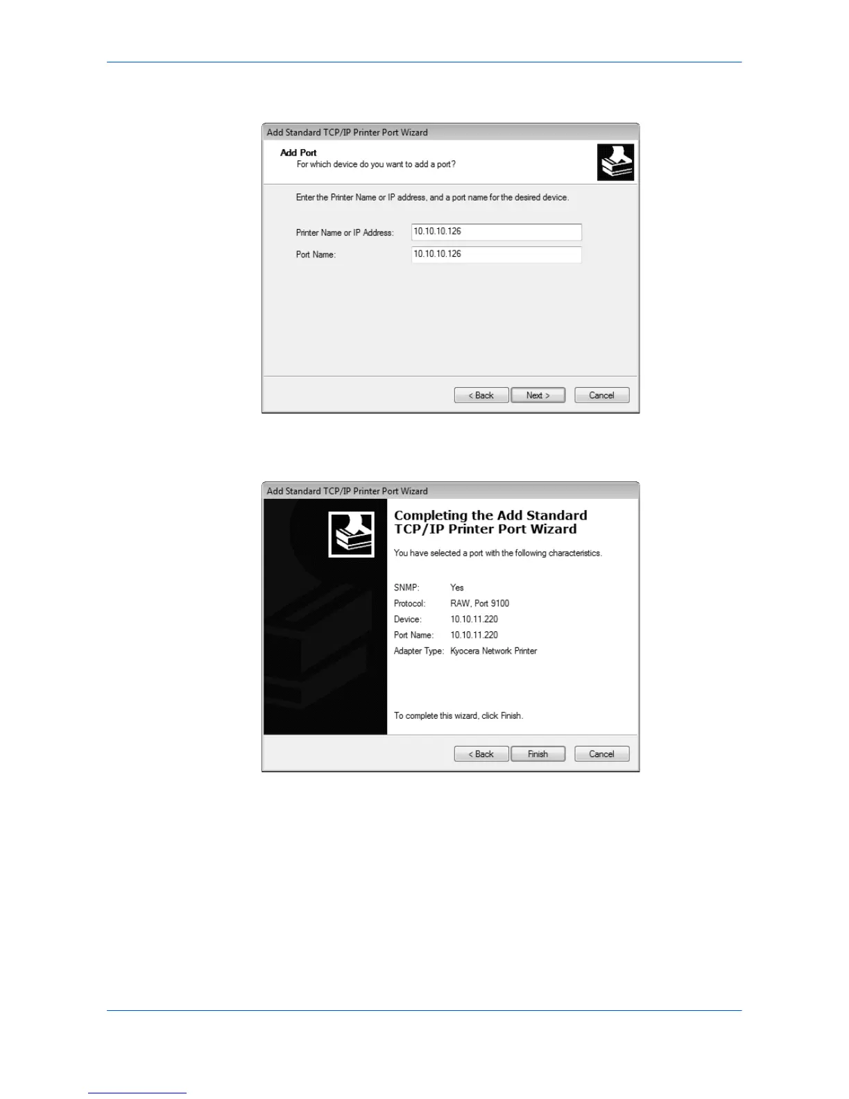 close the Add Port Wizard and return to the installation wizard. 3