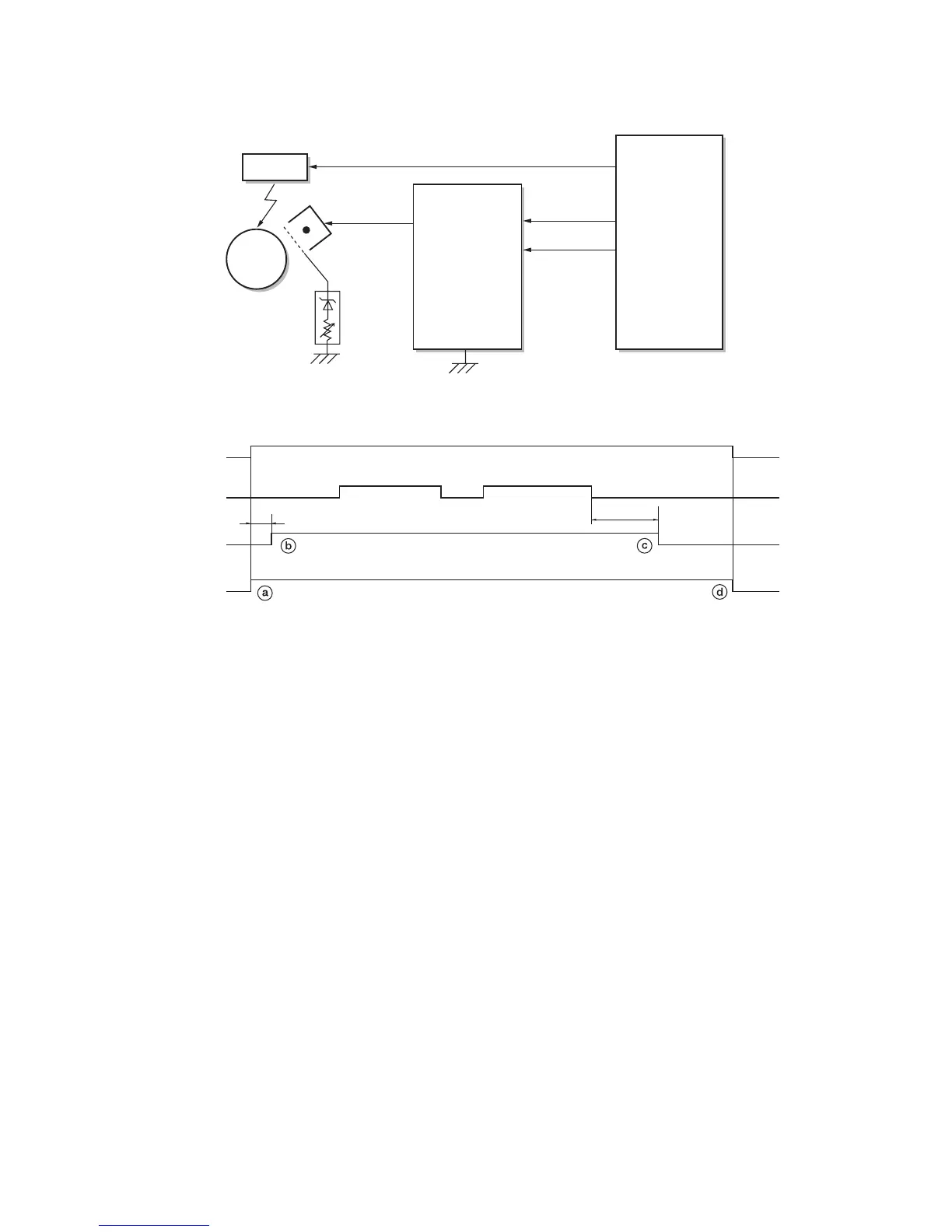 b: 100 ms after the drive motor (DM) turns on, main charging starts.