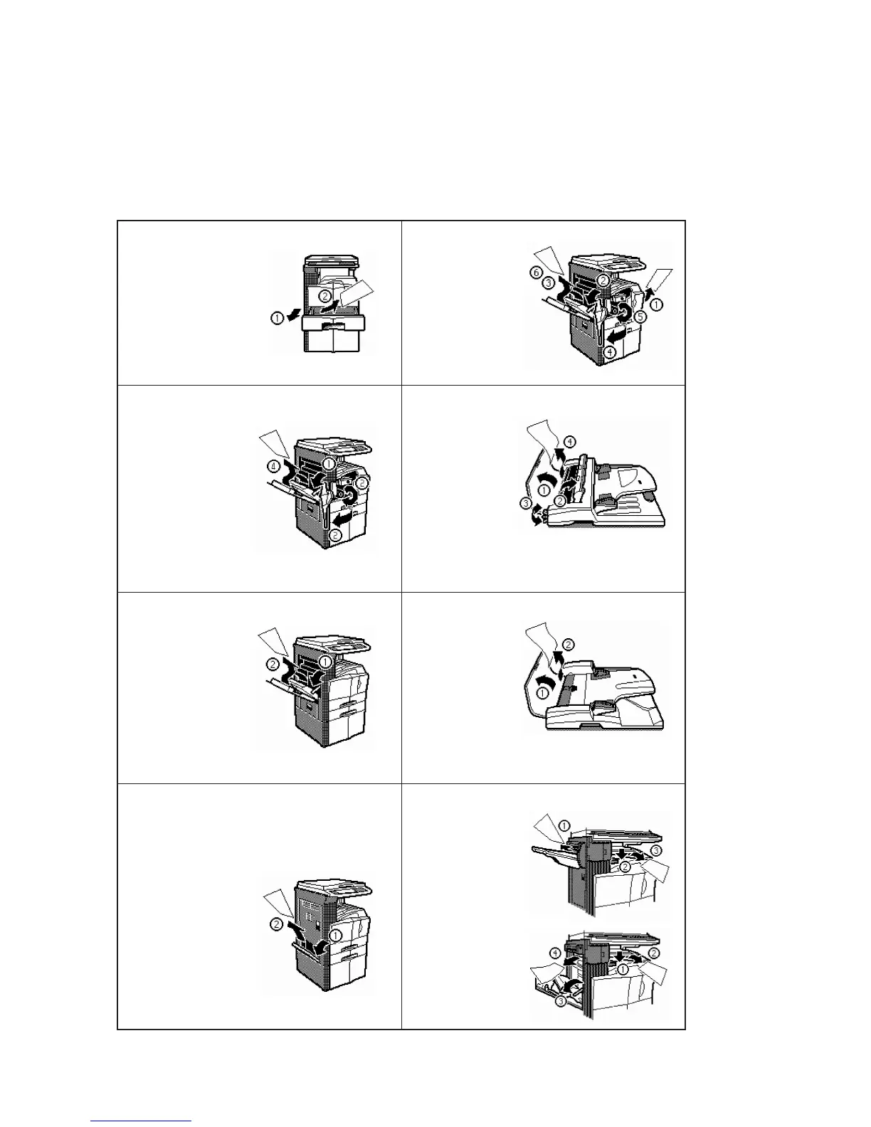 To remove paper jammed in the copier, open the front cover, conveying cover, side cover or drawer.