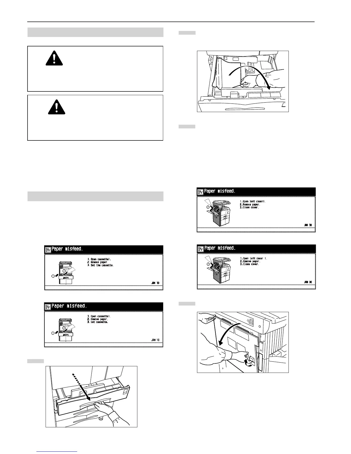 Misfeed in left cover 1 (JAM 30 to 34, 36 to 52, 60, 61)