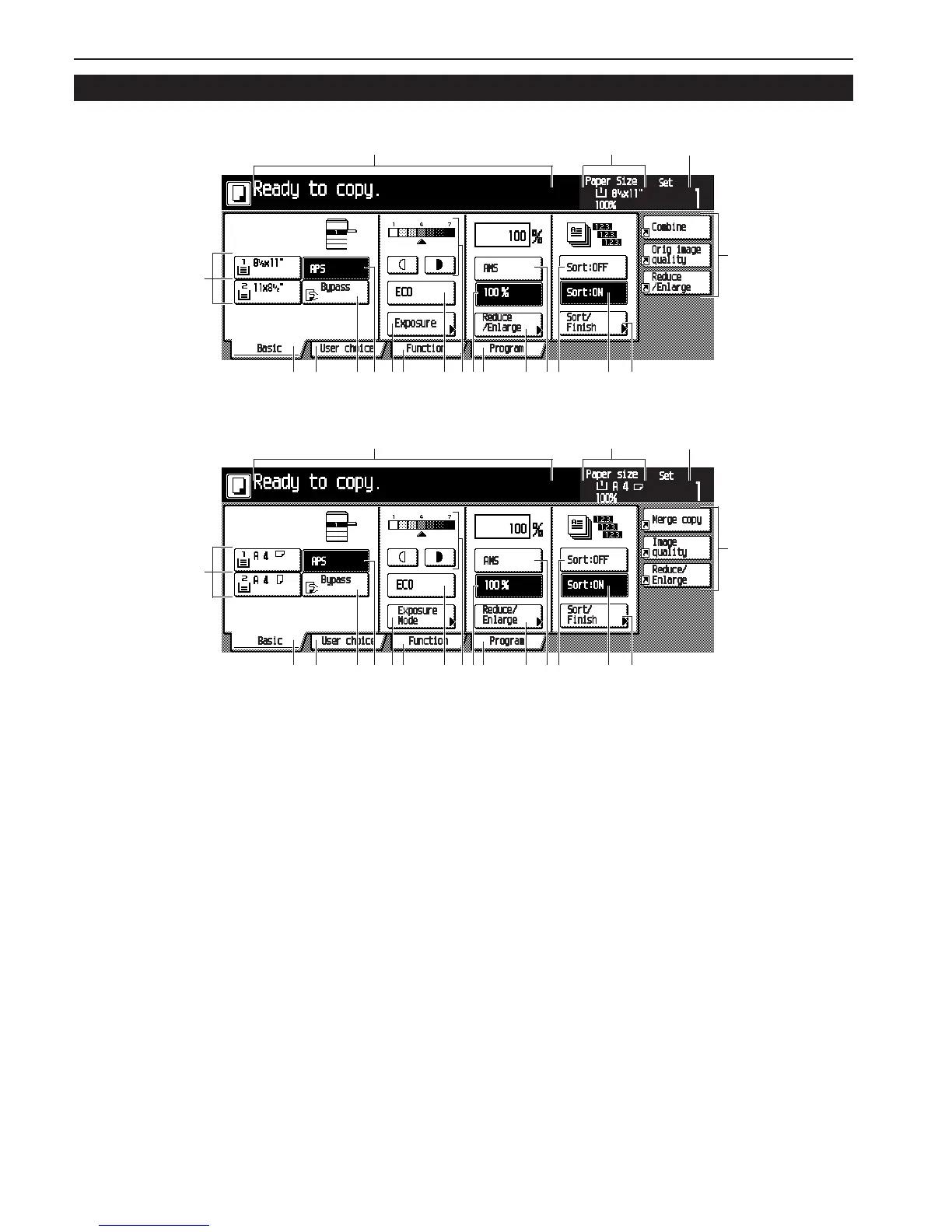 (Touch this key to return to the Basic screen.)