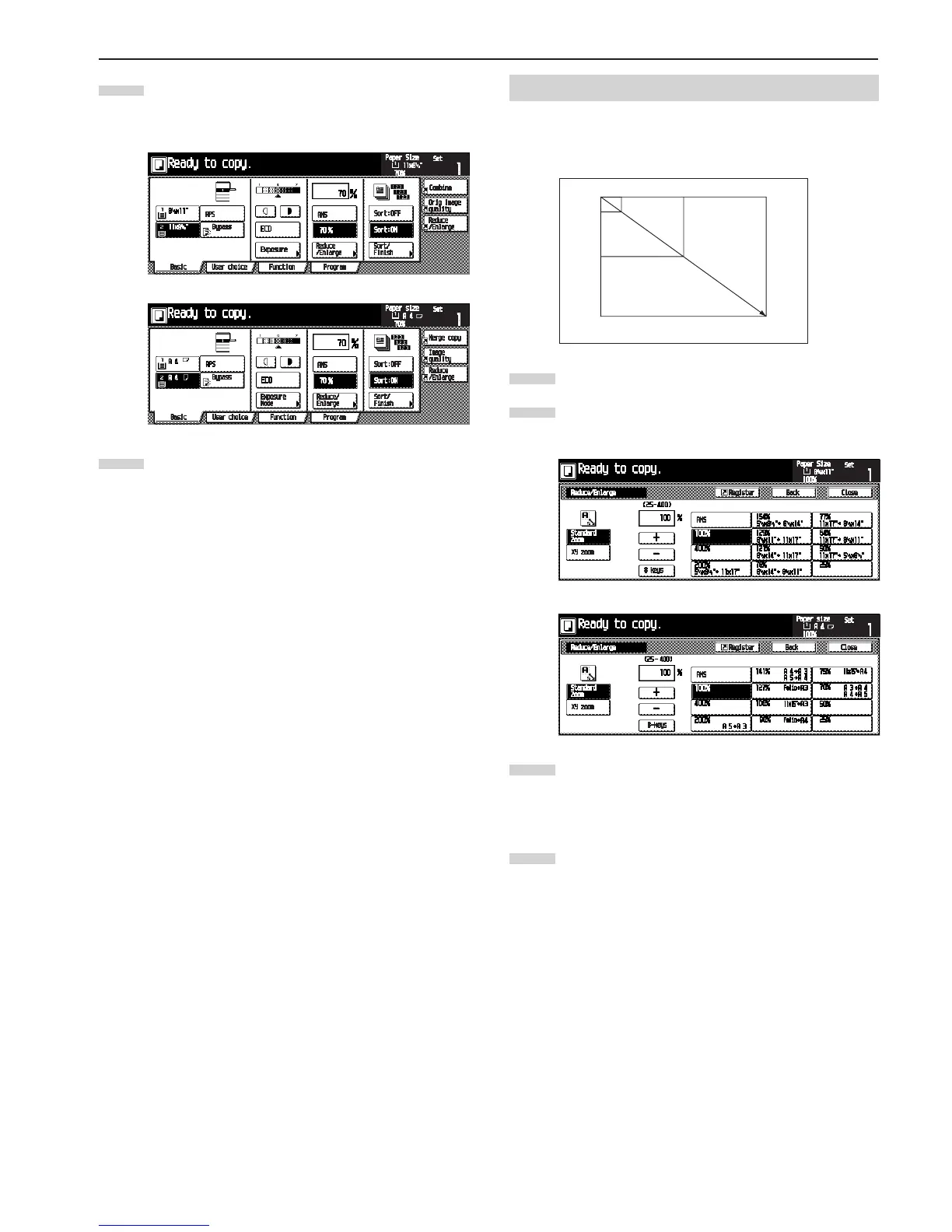 Touch the [Reduce/Enlarge] key. The “Zoom mode”