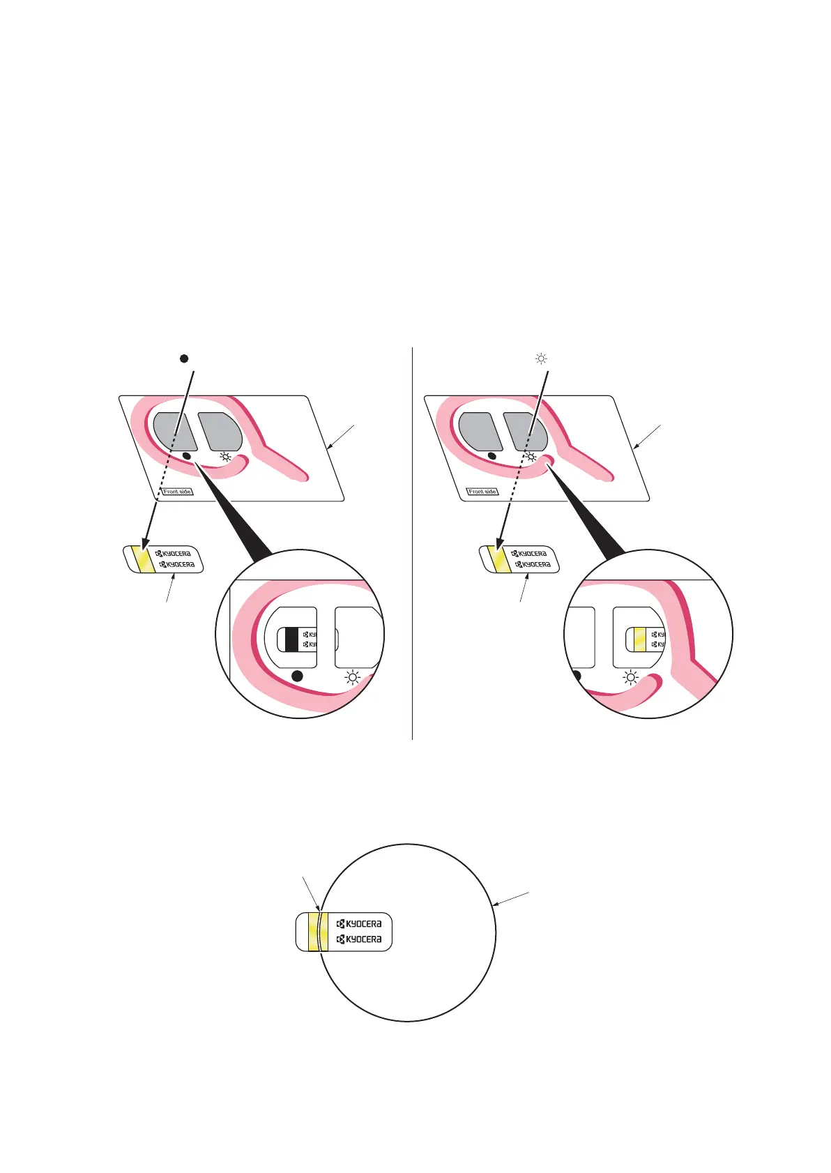 Hold the validation viewer over the left side part of the brand protection seal on the toner container. Through each window
