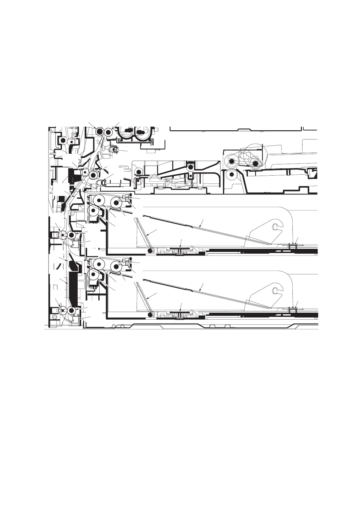 the cassettes 1, 2 or MP tray to the left and right registration rollers, at which point secondary feed takes place and the