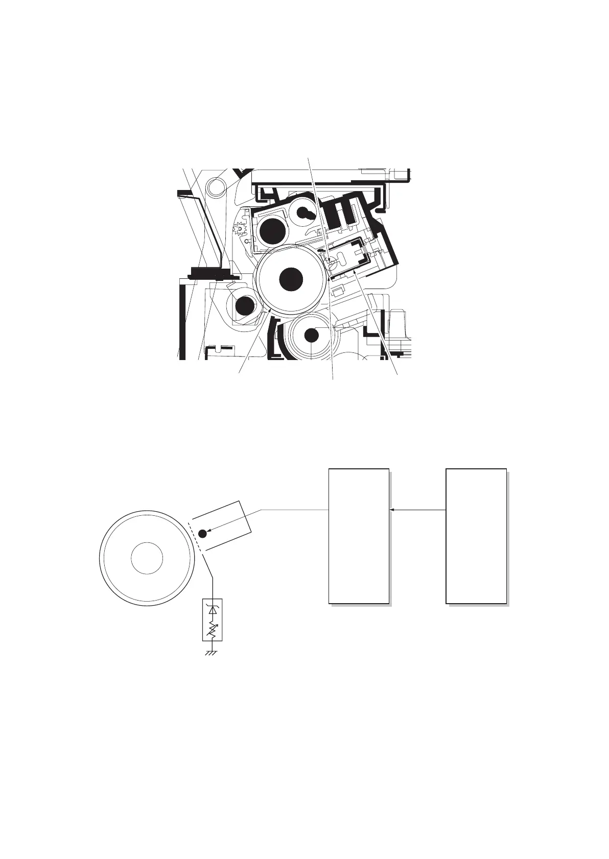 The main charging section consists of the main charger assembly, drum and so on. The drum is electrically charged uni-