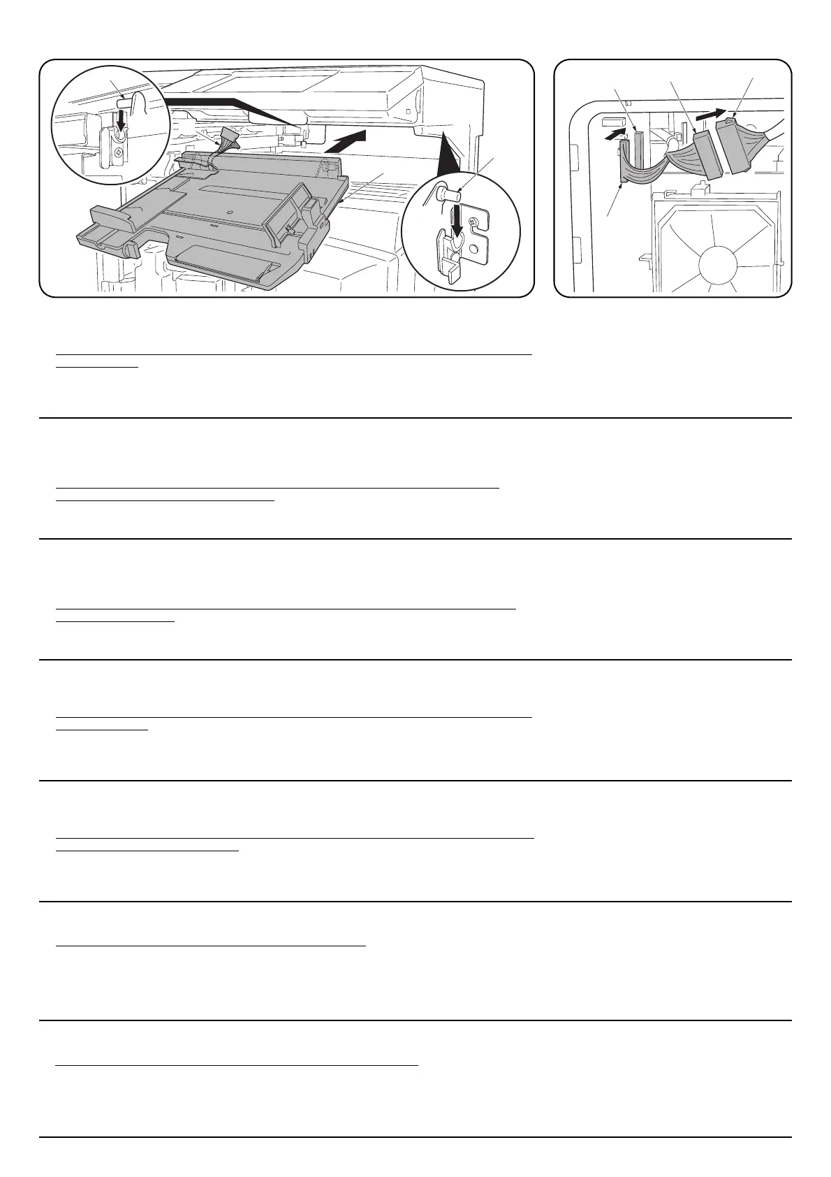 18.Insert the finisher process table (E) from the front side of the machine and hang the hooks (23) on