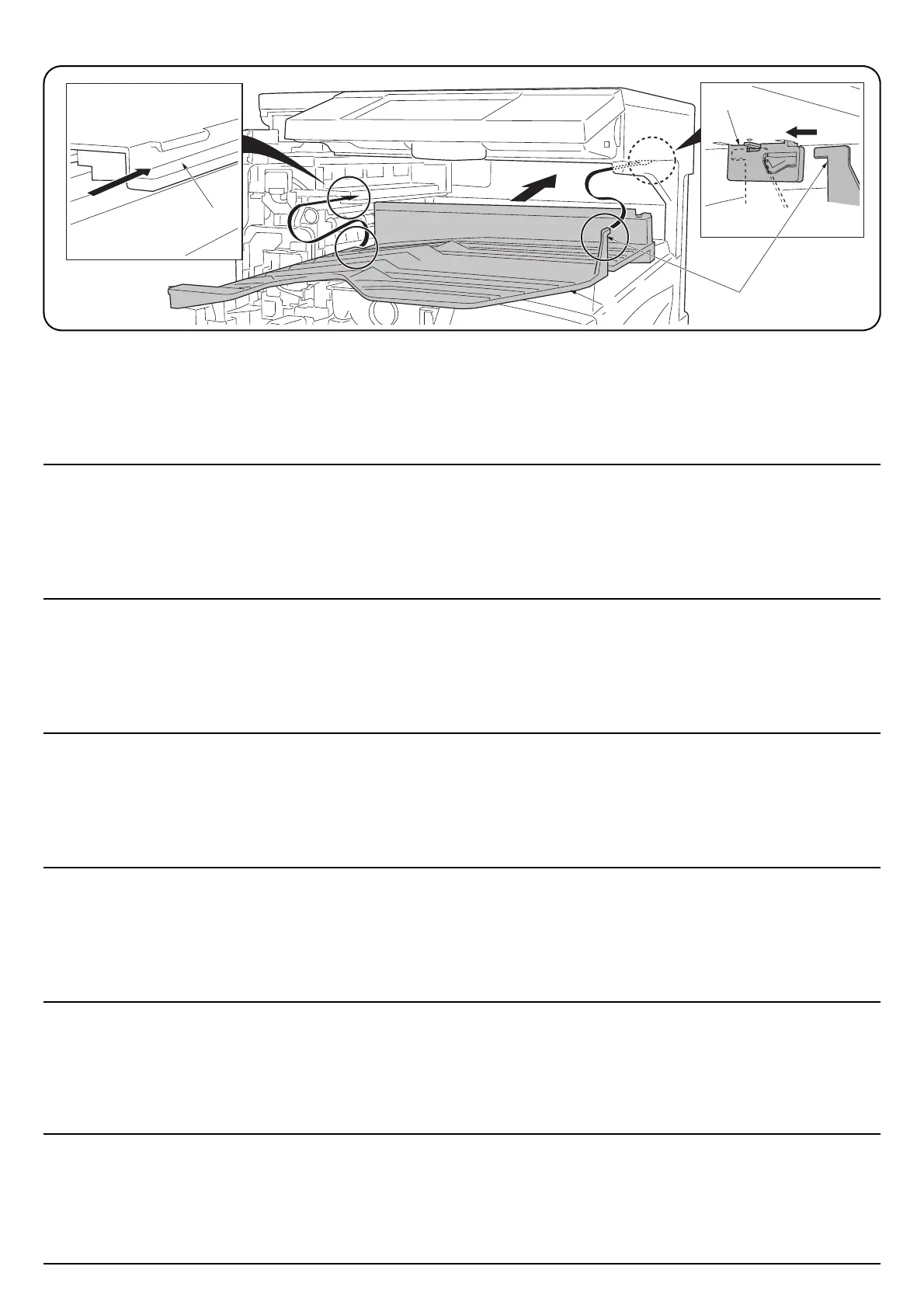 18.ジョブセパレータトレイ (D) を機械本体前側から挿入し、取り付ける。