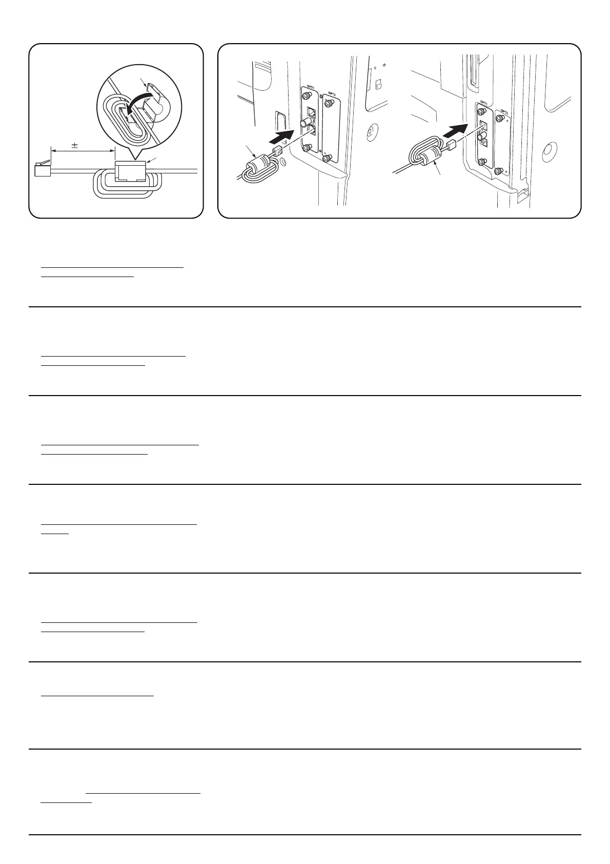 4. ライン端子に、電話回線からのモジュラーコードのフェライトコア (D) が取り付けられている側