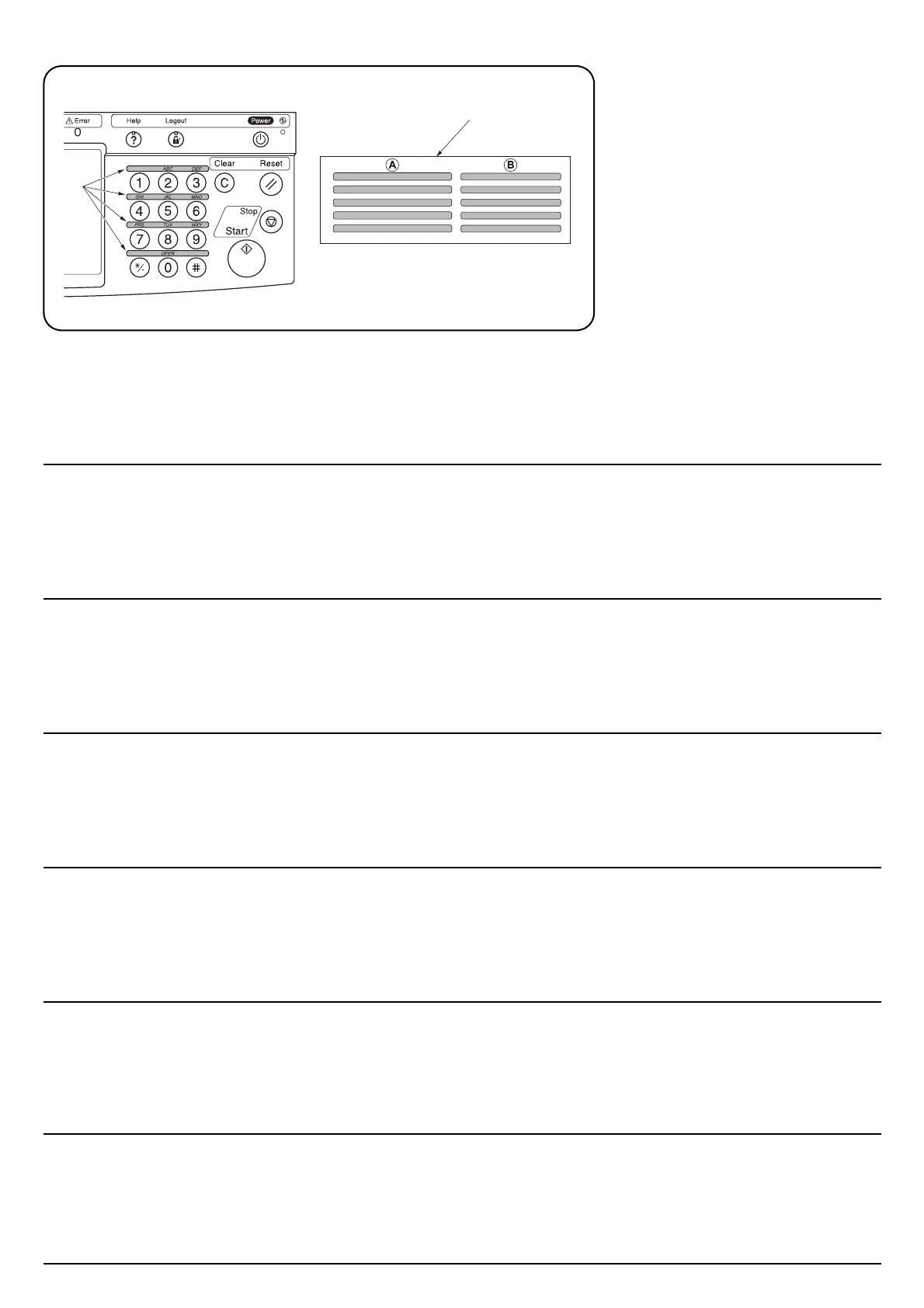 8. Wipe the area above the numeric keys at the right side of the operation panel with alcohol and adhere the alphabet labels (F) here.