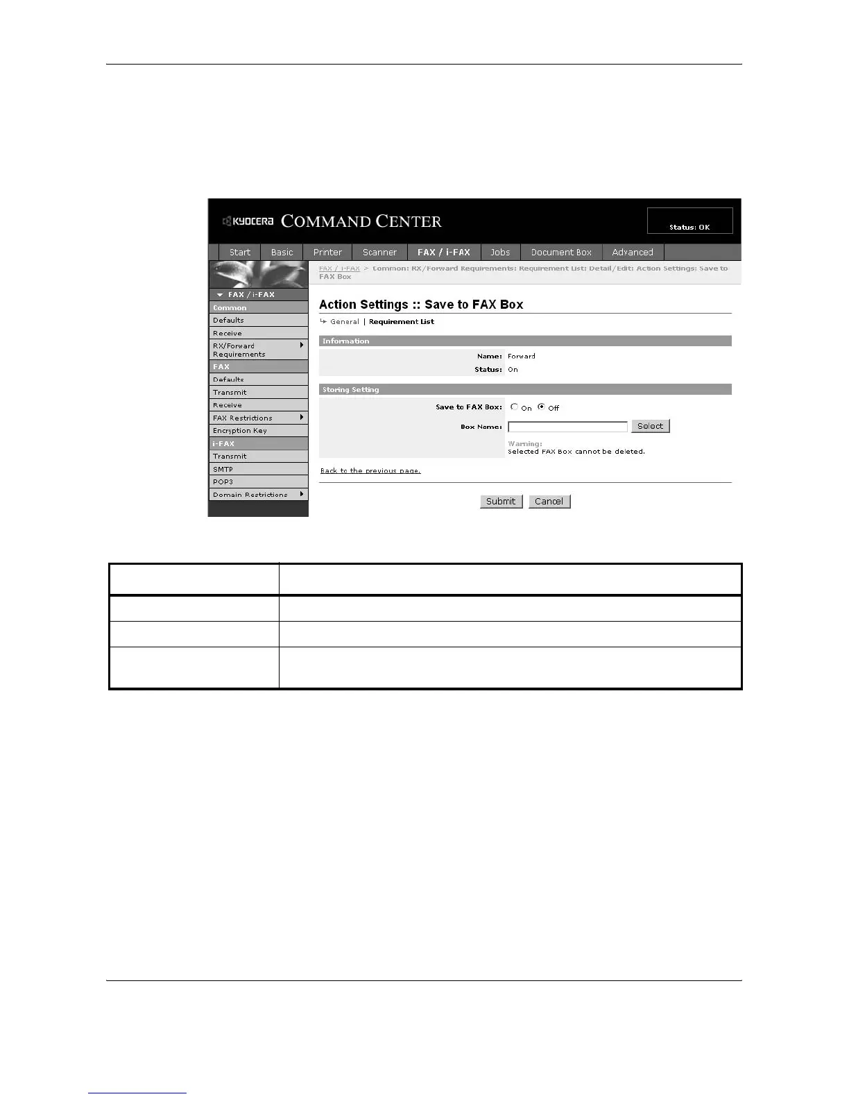 Select To select a FAX Box, click Select. Click the checkbox for the FAX Box you