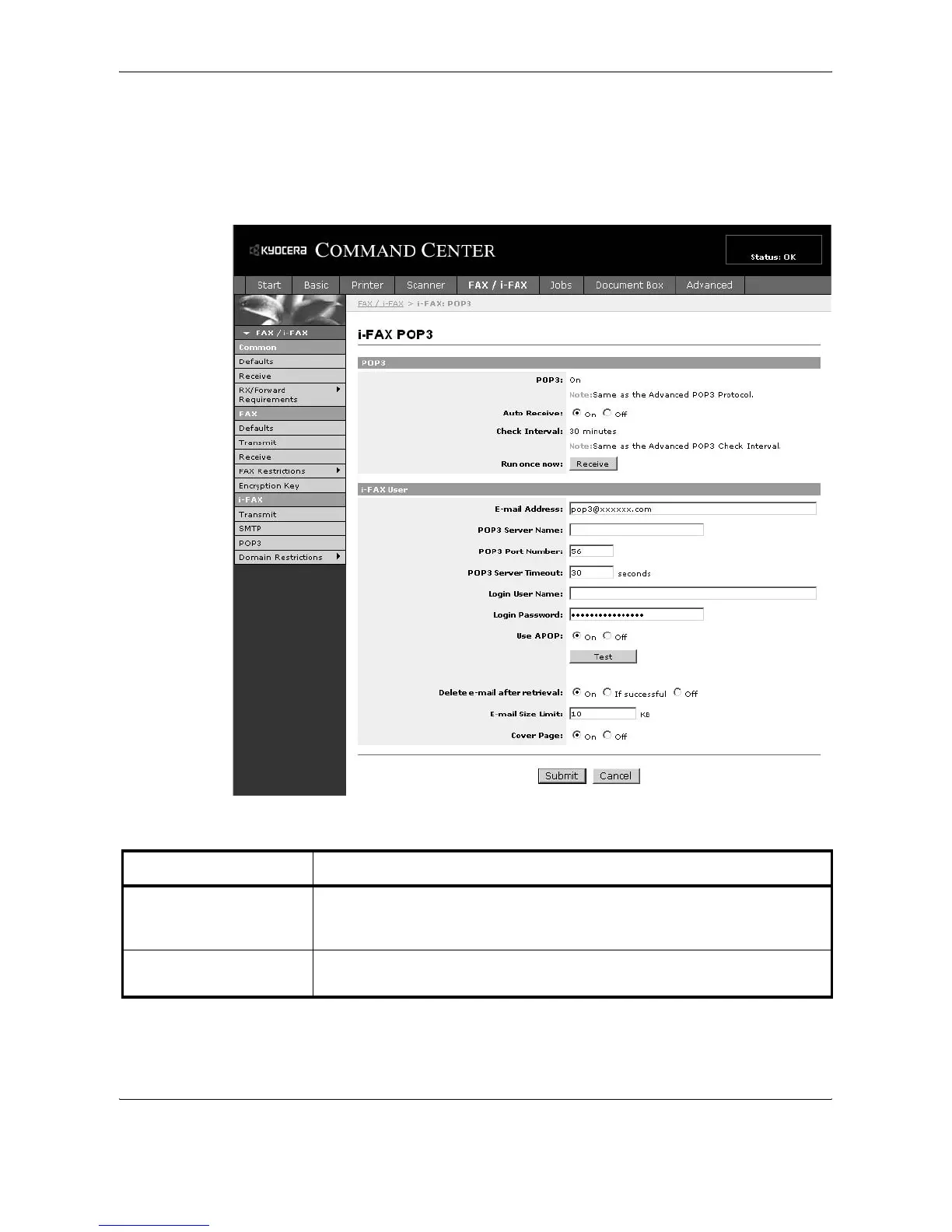 i-FAX POP3 Settings