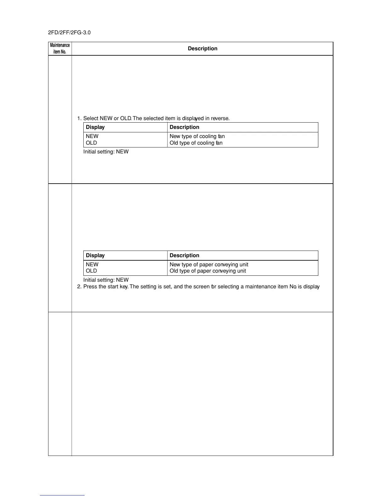 2. Press the start key. The setting is set, and the screen for selecting a maintenance item No. is displayed.