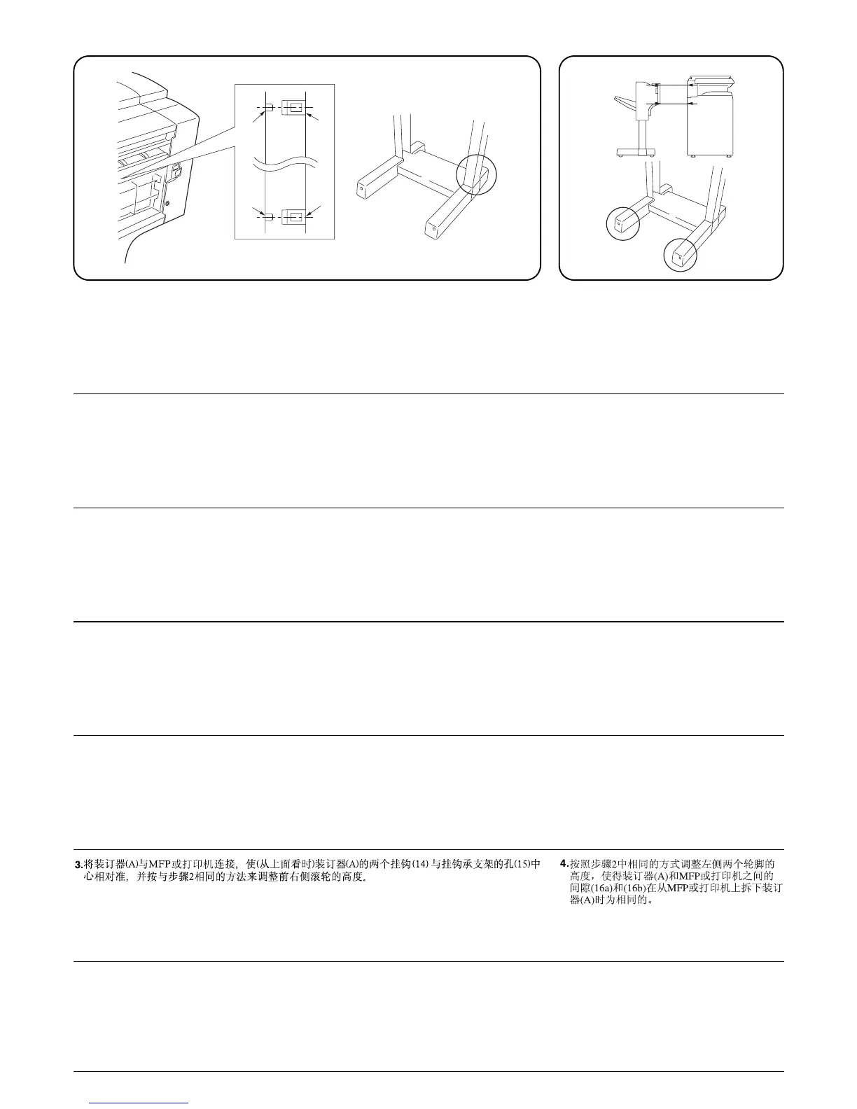3. ドキュメントフィニッシャ(A) を MFP 本体またはプリンタ本体に連結し、上から見た時に、ドキュ