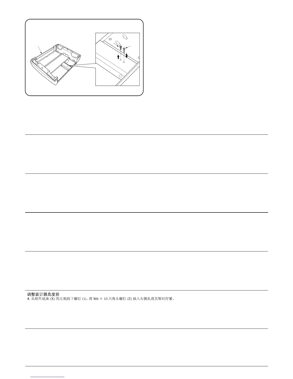 4. Quite el tornillo (1) del lado izquierdo de la base del conjunto (X) e inserte el tornillo de cabeza hexagonal M4 × 10 (Z) en el agujero del lado derecho