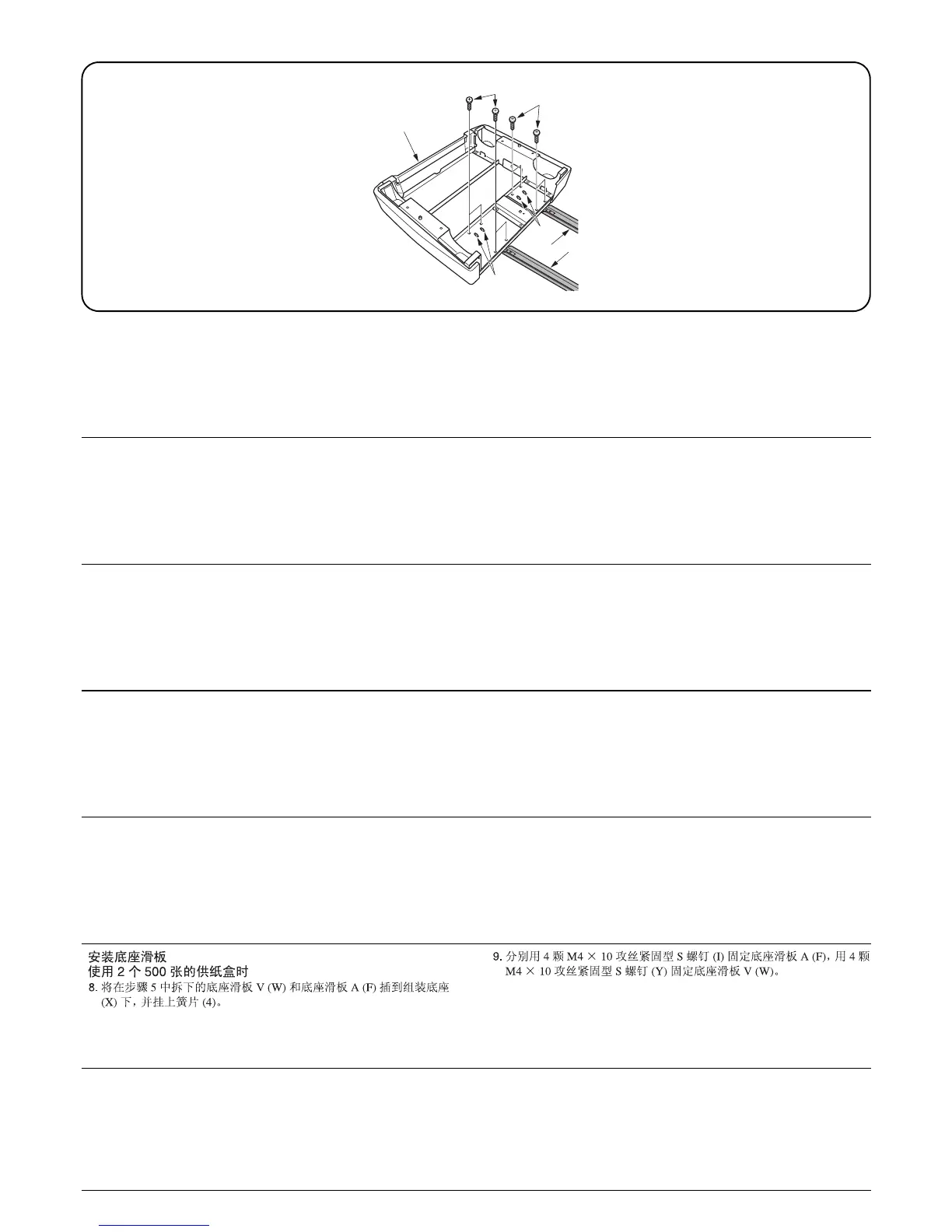 base slider V (W) with four M4 × 10 tap Tight S screws (Y) respectively.