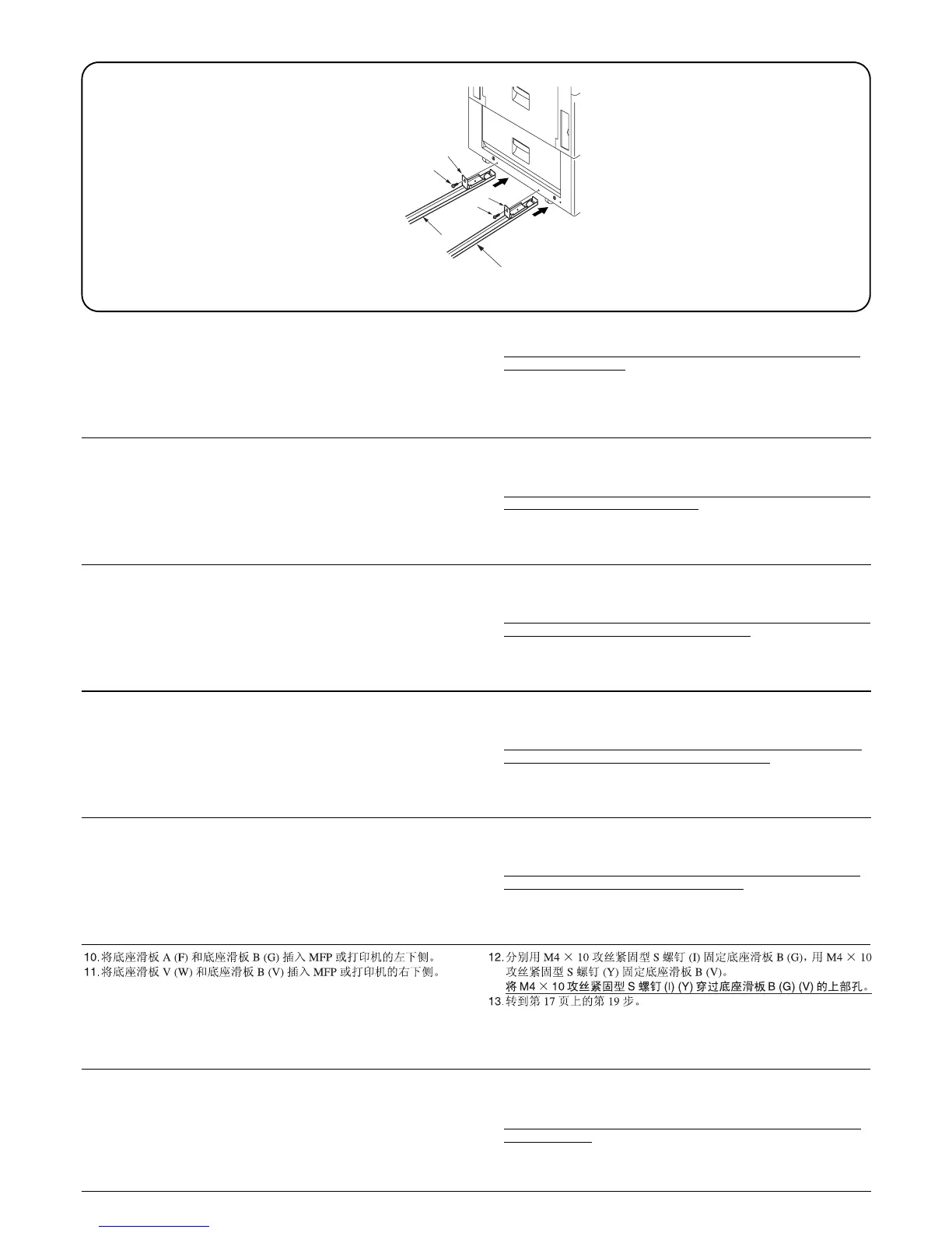 11.ベーススライダ V(W) とベーススライダ B(V) を MFP 本体またはプリン